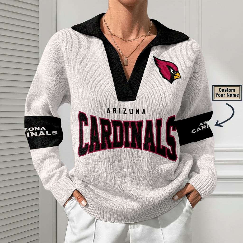 Arizona Cardinals Women Customized Name V-Neck Hooded Knit Sweater AMCCLG002347