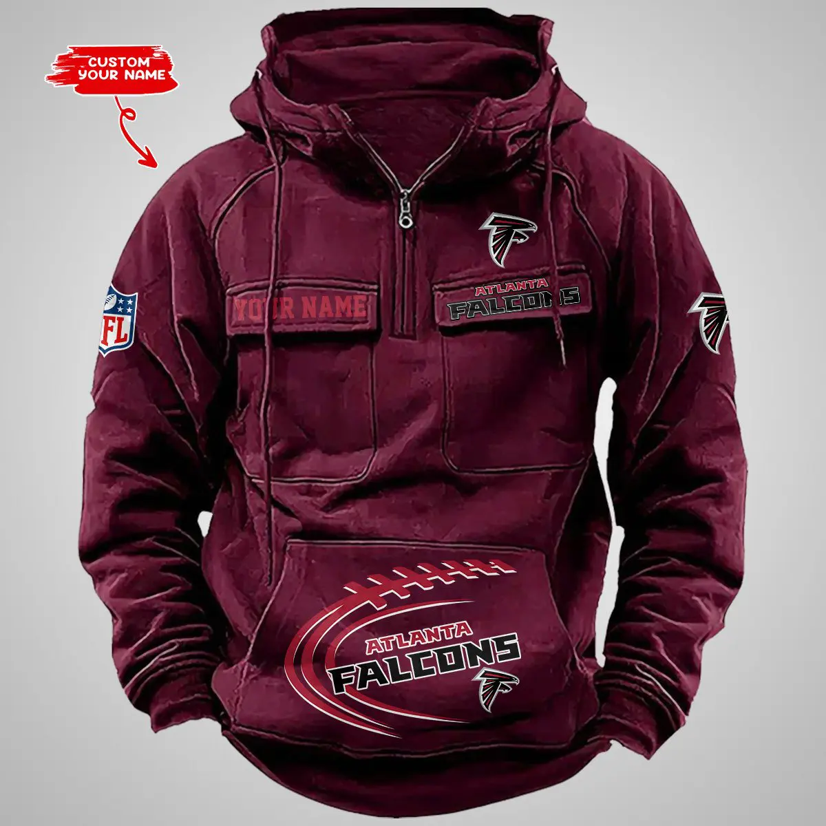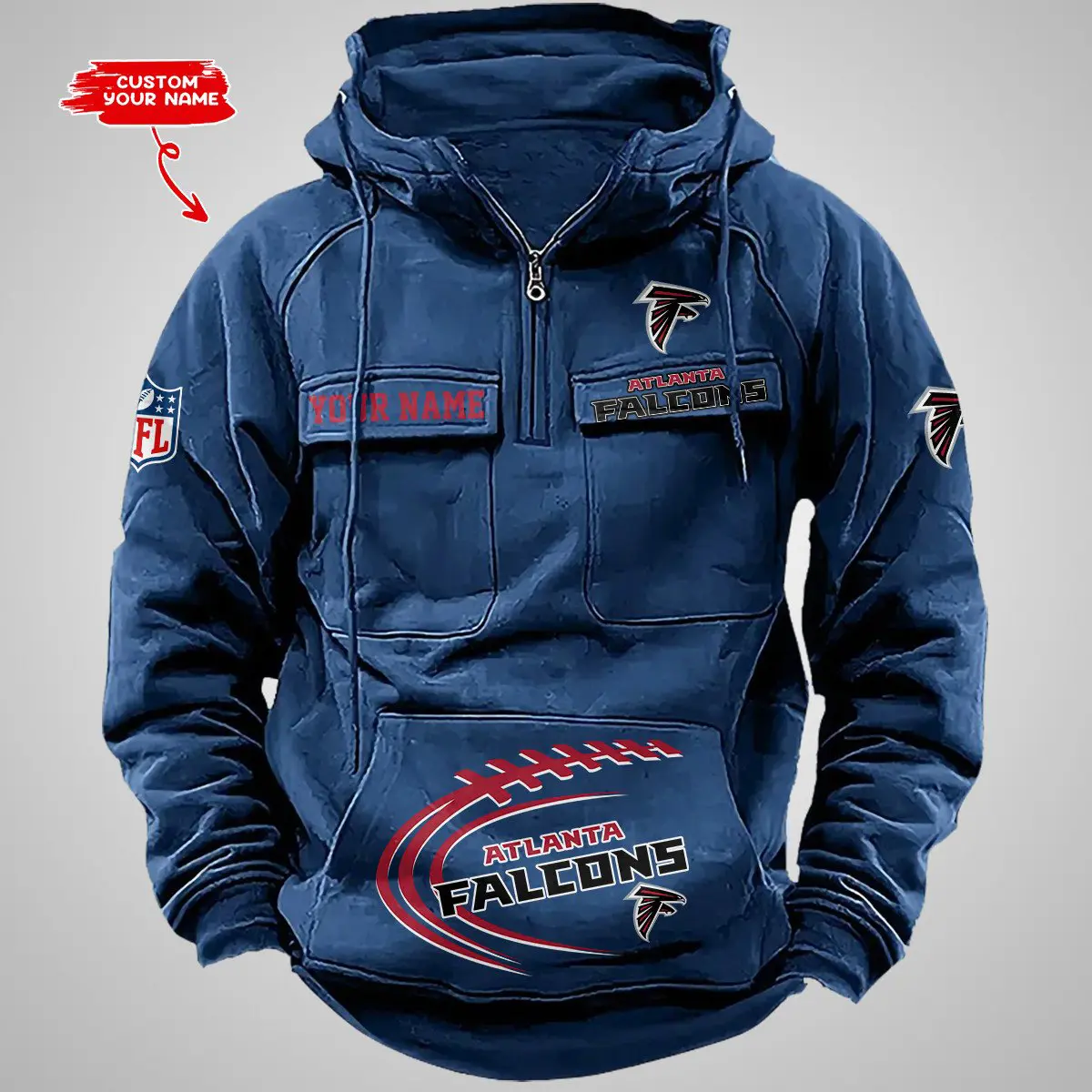 Atlanta Falcons New Personalized Multi Pockets Zip Hoodie AMCMZHD000076