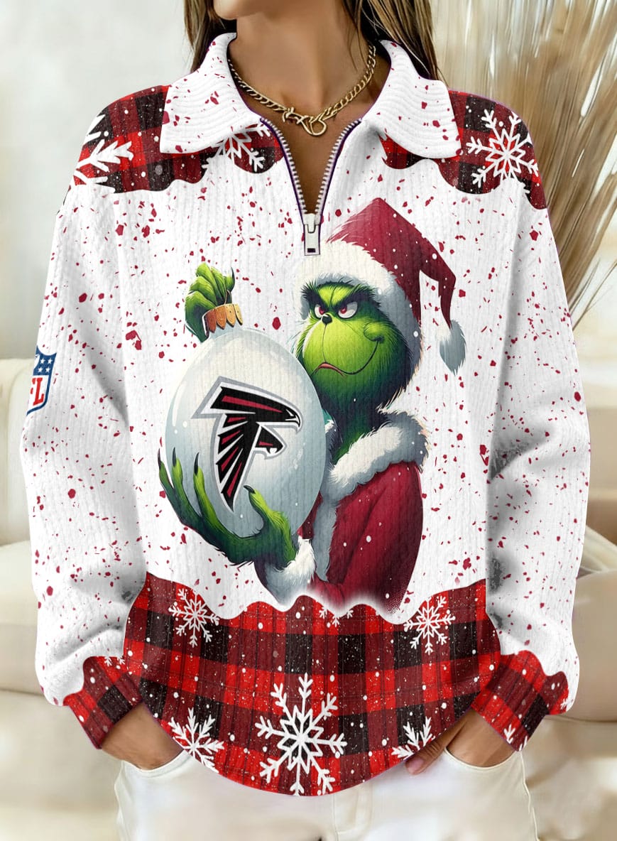 Atlanta Falcons x The Grinch 2025 Edition Quarter Zip Corduroy Sweatshirt for Christmas AMCCLG001375