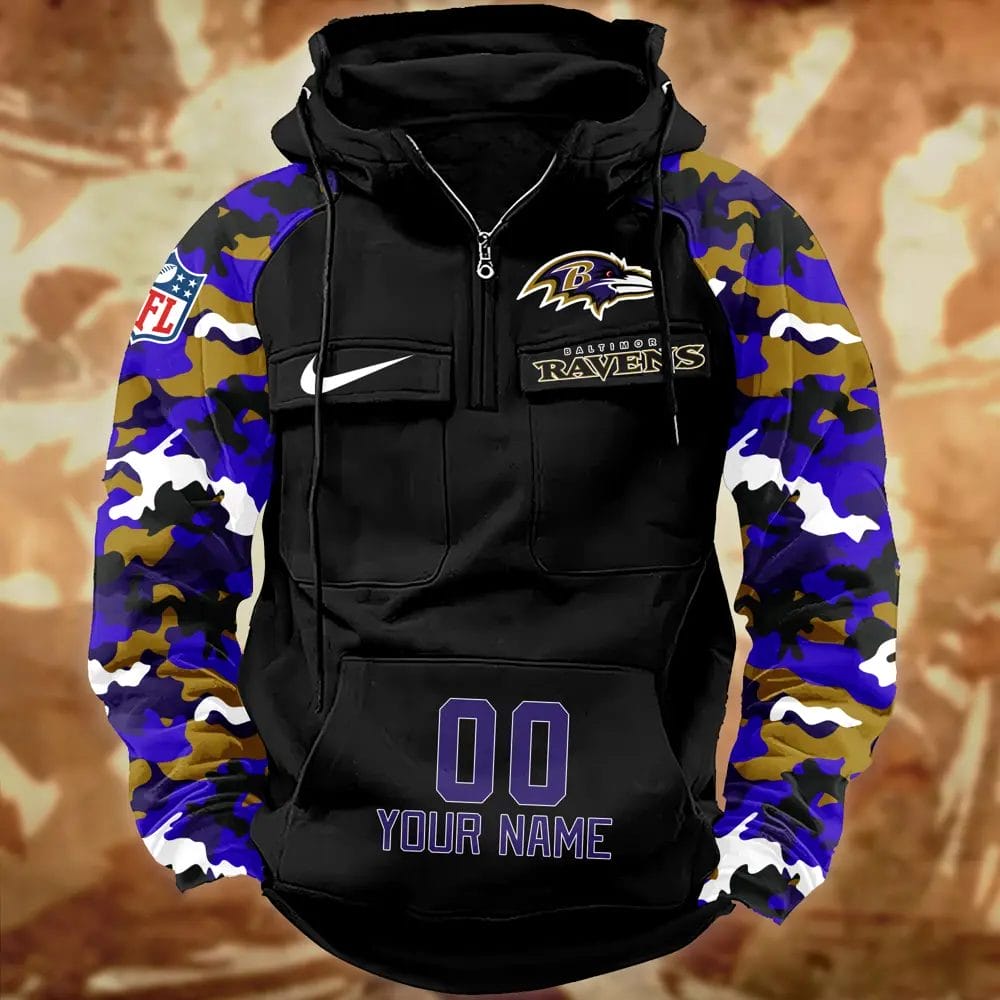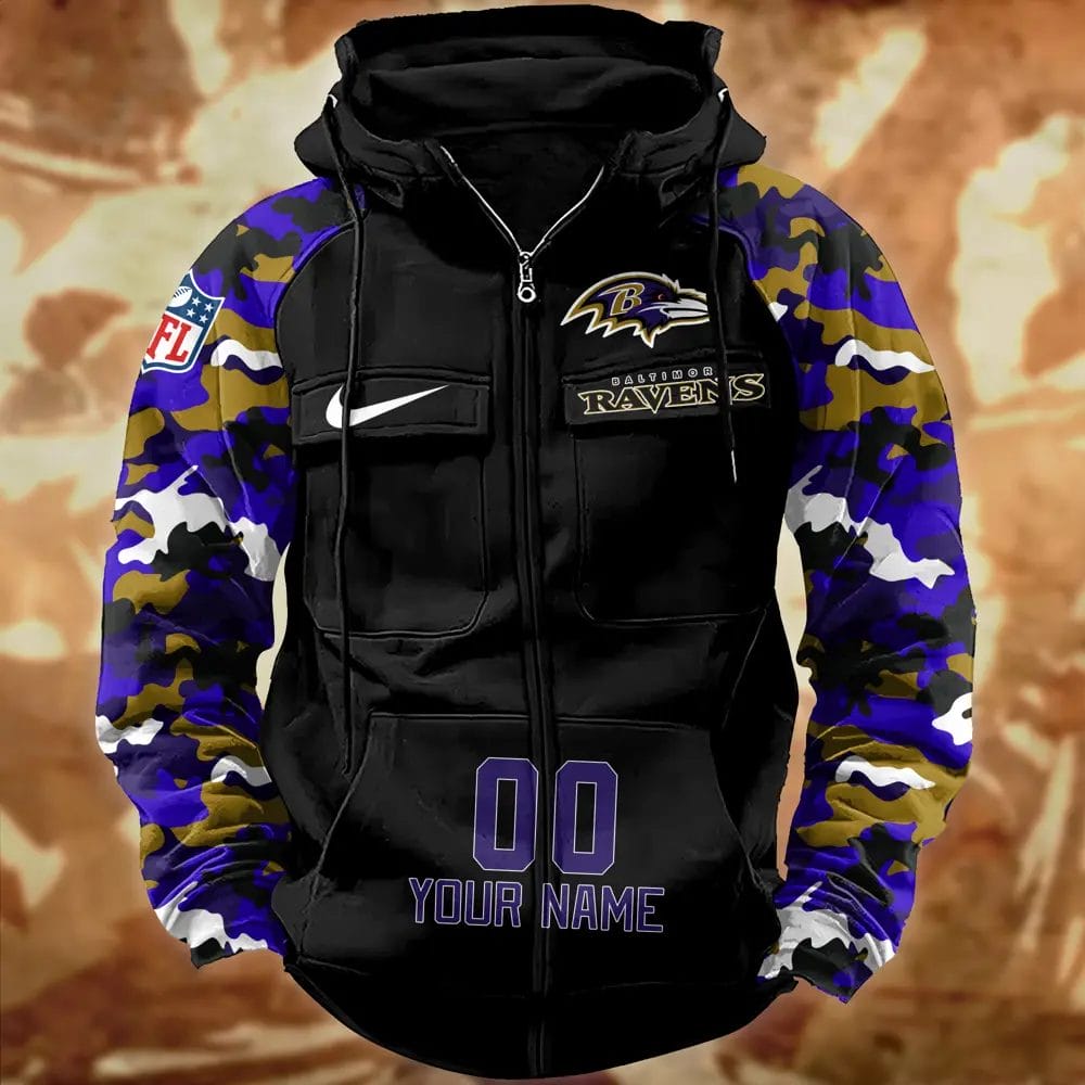 Baltimore Ravens Hot Camouflage Multi Pockets Zip Hoodie AMCCLG001148