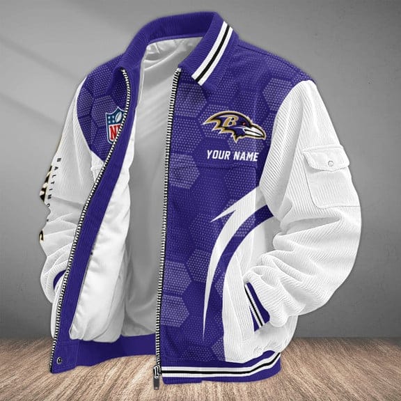 Baltimore Ravens Personalized Corduroy Bomber Jacket AMCCLG001921