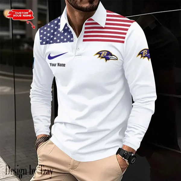 Baltimore Ravens Personalized Long Sleeve Polo Shirt AMCLSPS0060