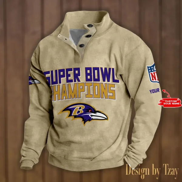 Baltimore Ravens Personalized Stand Collar Double Breasted Hoodie Super Bowl AMCDBH00160