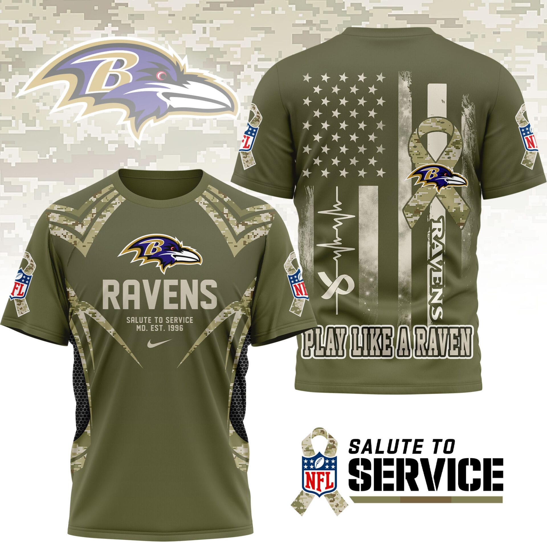 Baltimore Ravens | Premium NFL Salute to Service Camo 3D Shirt AMCCLG001045