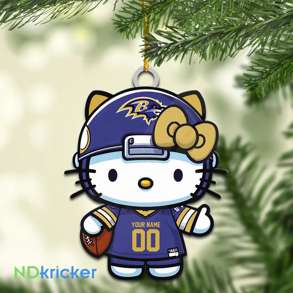Baltimore Ravens x Hello Kitty Christmas Custom Any Name Acrylic Ornament AMCACS000550