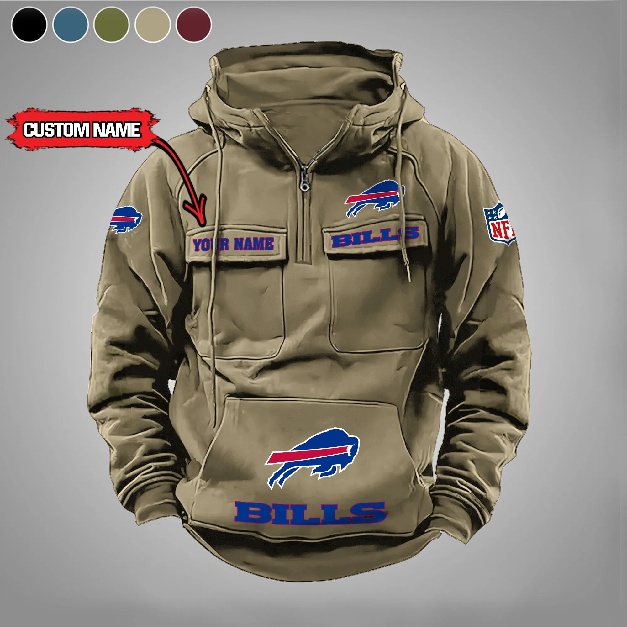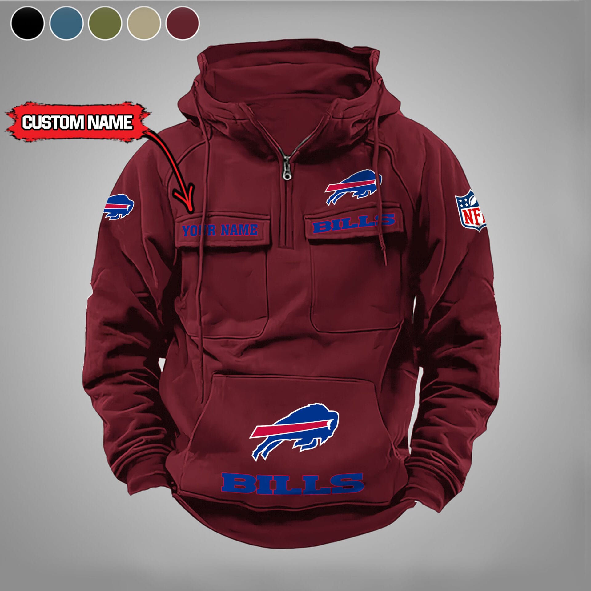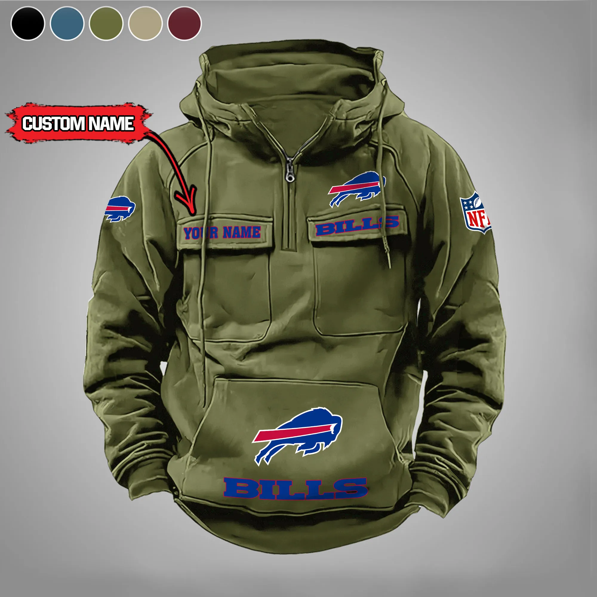 Buffalo Bills New Personalized Multi Pockets Zip Hoodie AMCMZHD000027