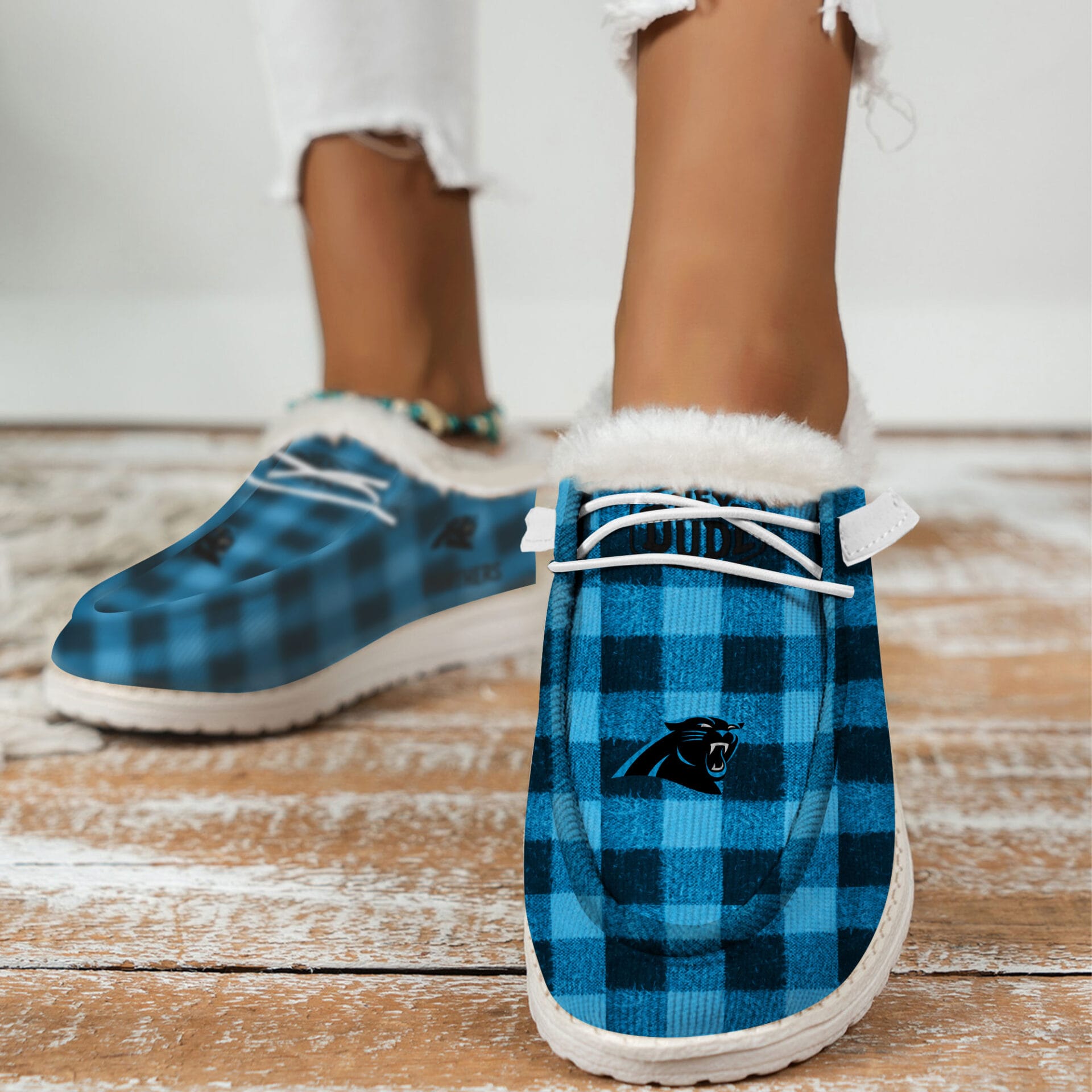Carolina Panthers Fuzzy Dude Shoes Winter Collection AMCFDUDE000070