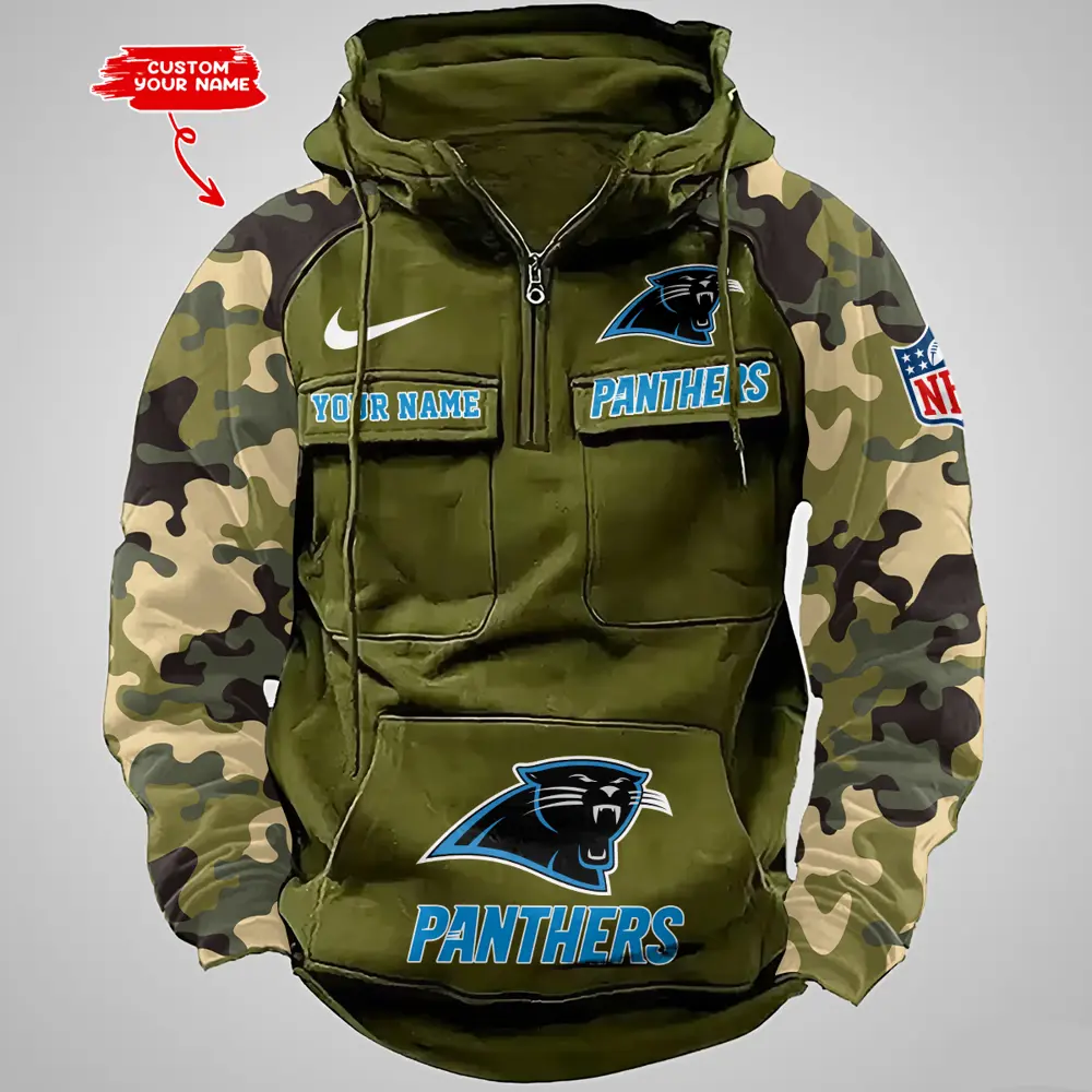 Carolina Panthers Hot Camouflage Multi Pockets Zip Hoodie AMCCLG001182