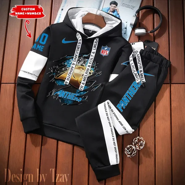 Carolina Panthers New Fashion Casual Sportswear: Stylish Hooded Sweatshirt and Jogger Pants Set for Men AMCCSSW005