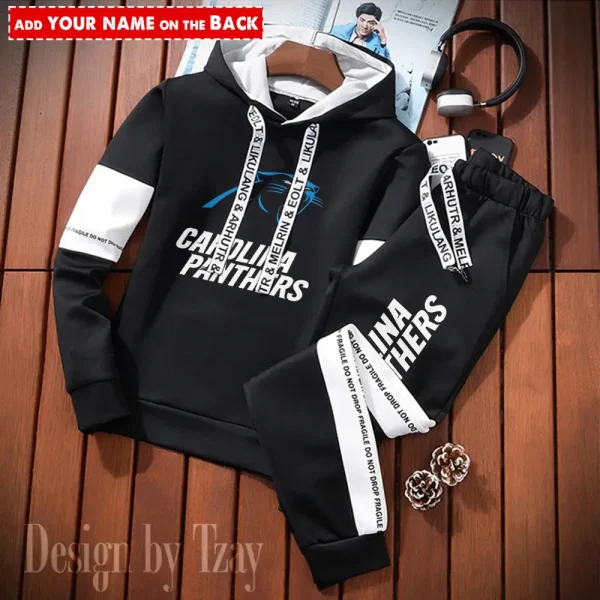 Carolina Panthers New Fashion Casual Sportswear: Stylish Hooded Sweatshirt and Jogger Pants Set for Men AMCCSSW037