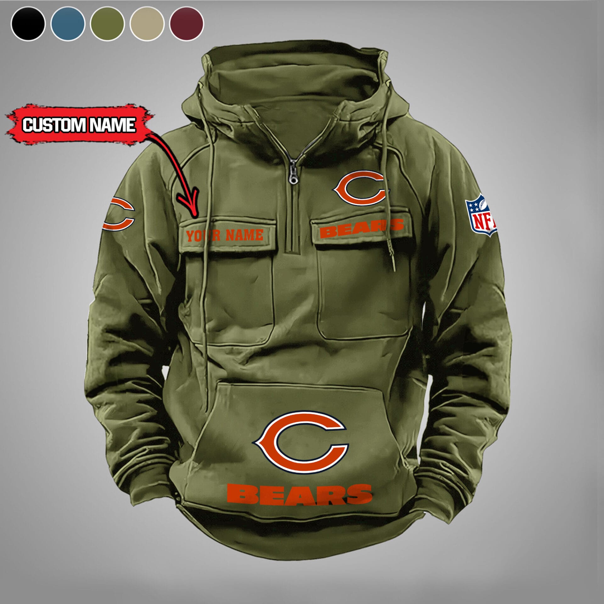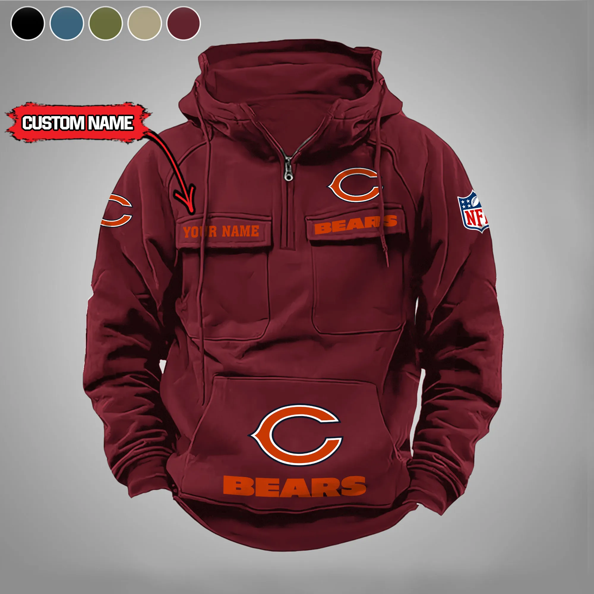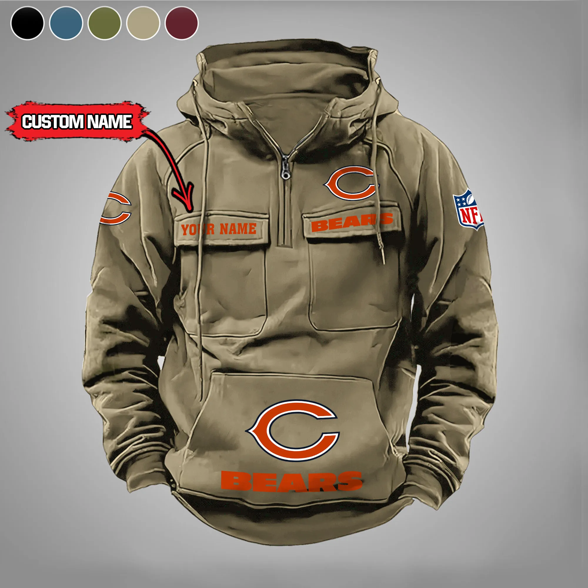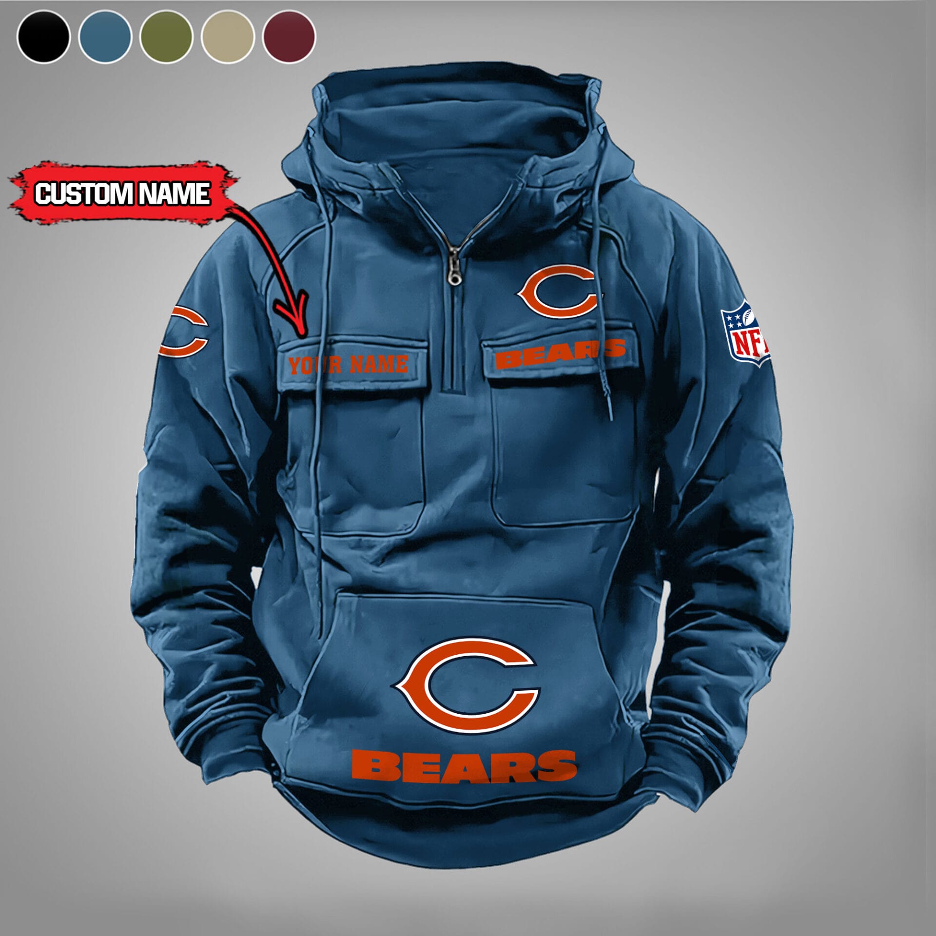 Chicago Bears New Personalized Multi Pockets Zip Hoodie AMCMZHD000015