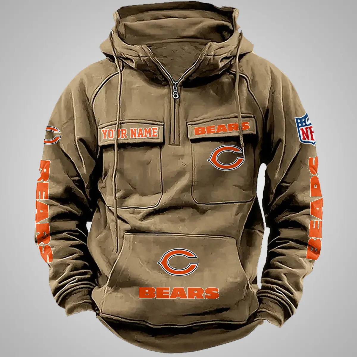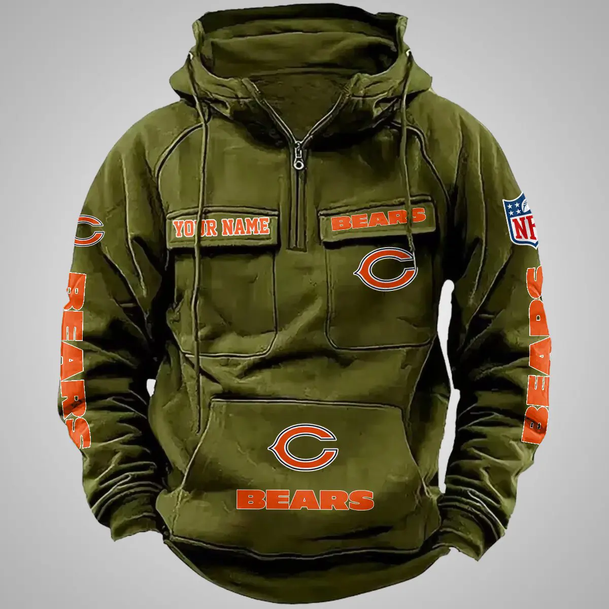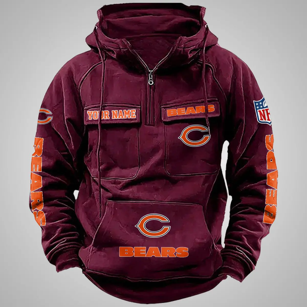 Chicago Bears New Personalized Multi Pockets Zip Hoodie AMCMZHD000093
