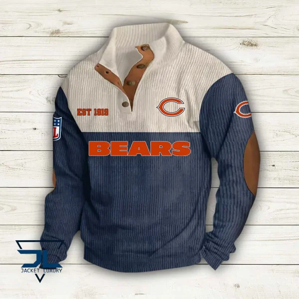 Chicago Bears Personalized Stand Collar Double Breasted Hoodie AMCDBH00002