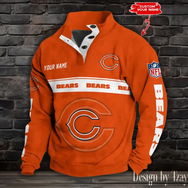 Chicago Bears Personalized Stand Collar Double Breasted Hoodie AMCDBH00203
