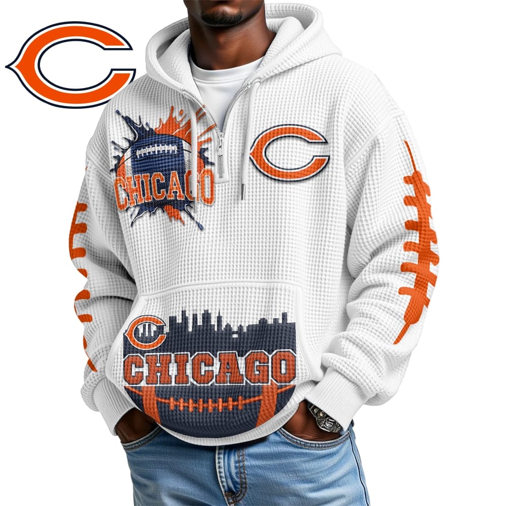 Chicago Bears | Premium NFL Waffle Zipper Long Sleeve Hooded Sweatshirt AMCCLG001630