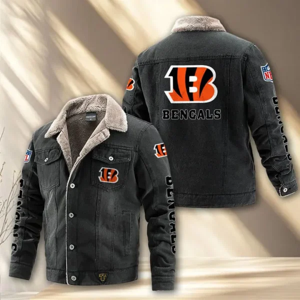 Cincinnati Bengals Fleece Lined Denim Jacket AMCFDJK007