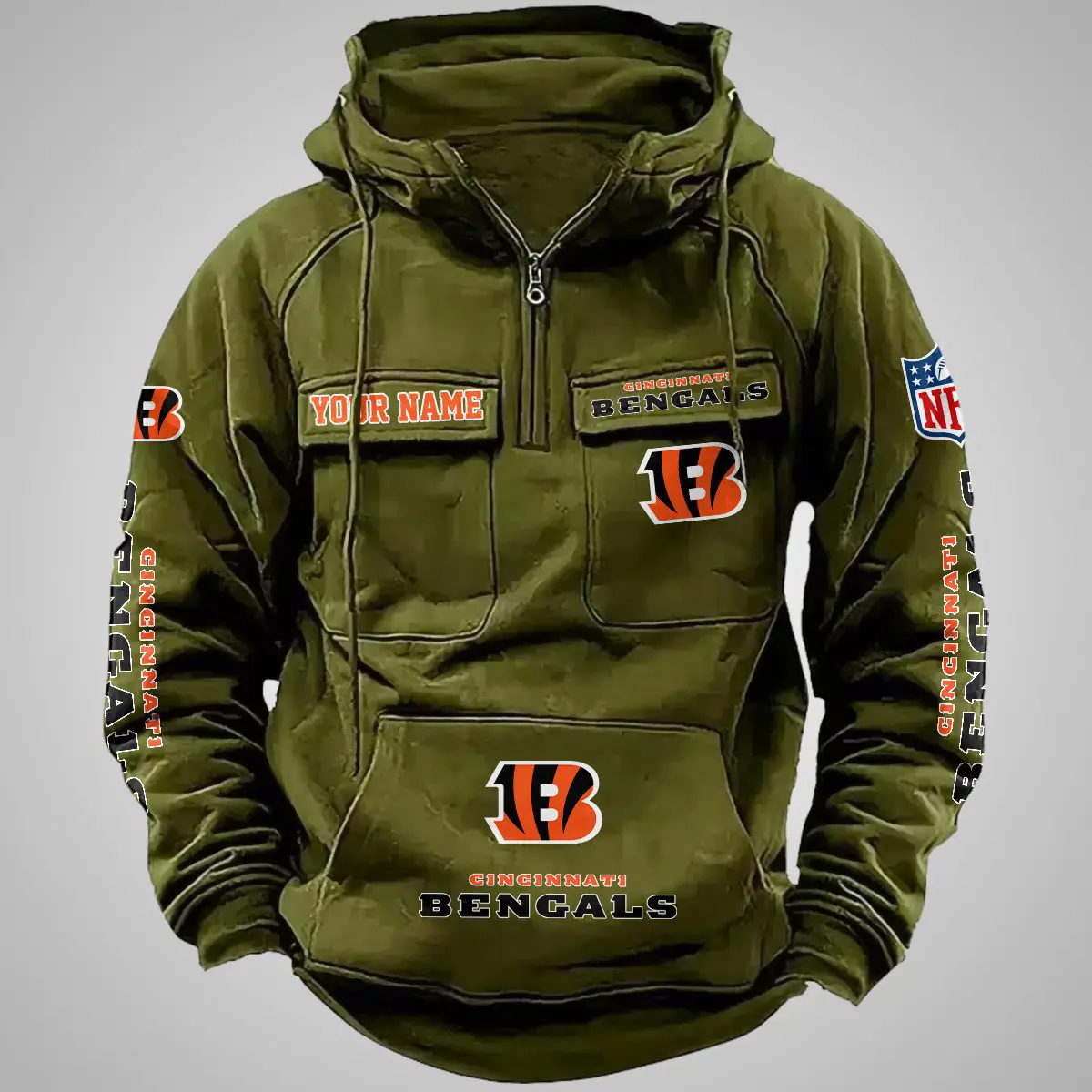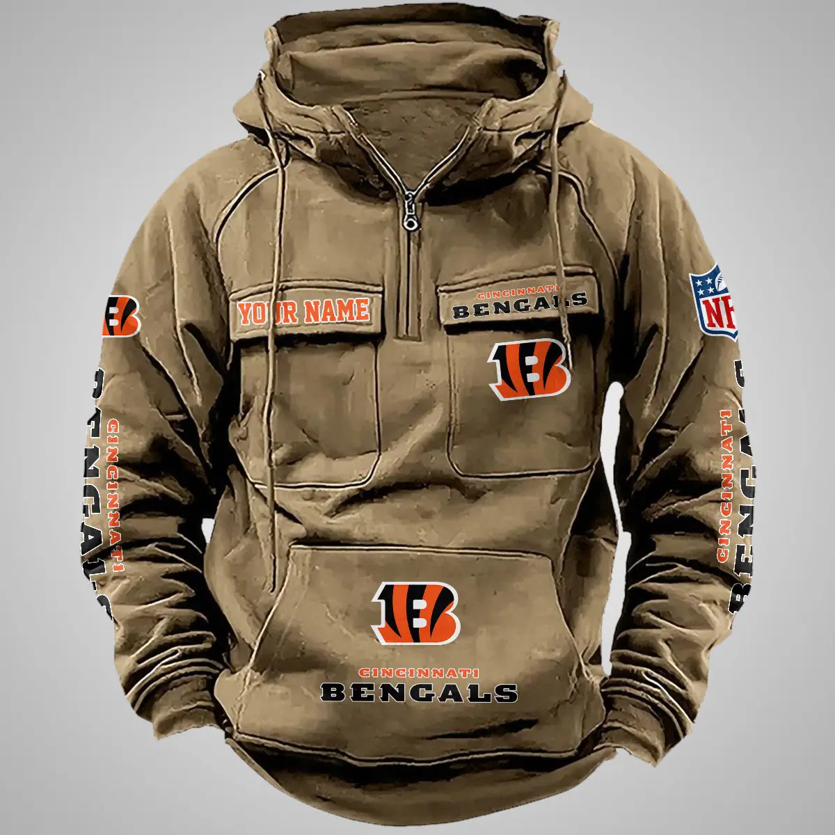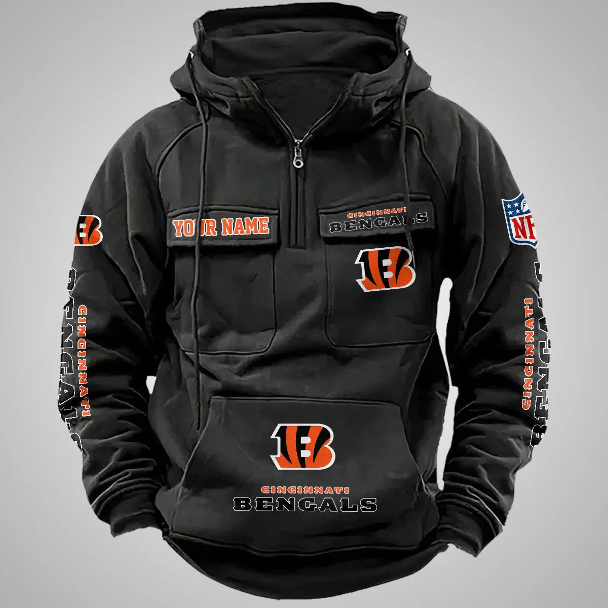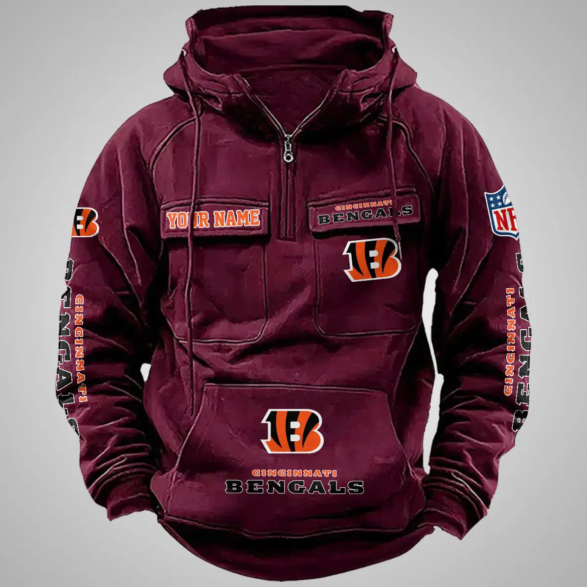 Cincinnati Bengals New Personalized Multi Pockets Zip Hoodie AMCMZHD000094