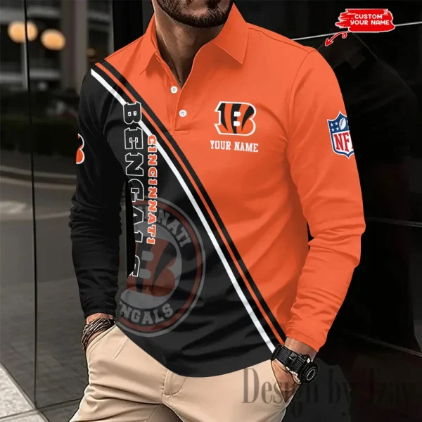 Cincinnati Bengals Personalized Long Sleeve Polo Shirt New 2025 AMCLSPS0238