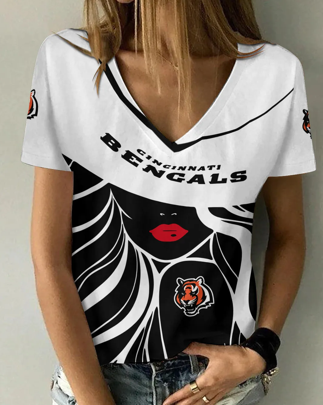 Cincinnati Bengals Personalized Summer V-neck Women T-shirt 147
