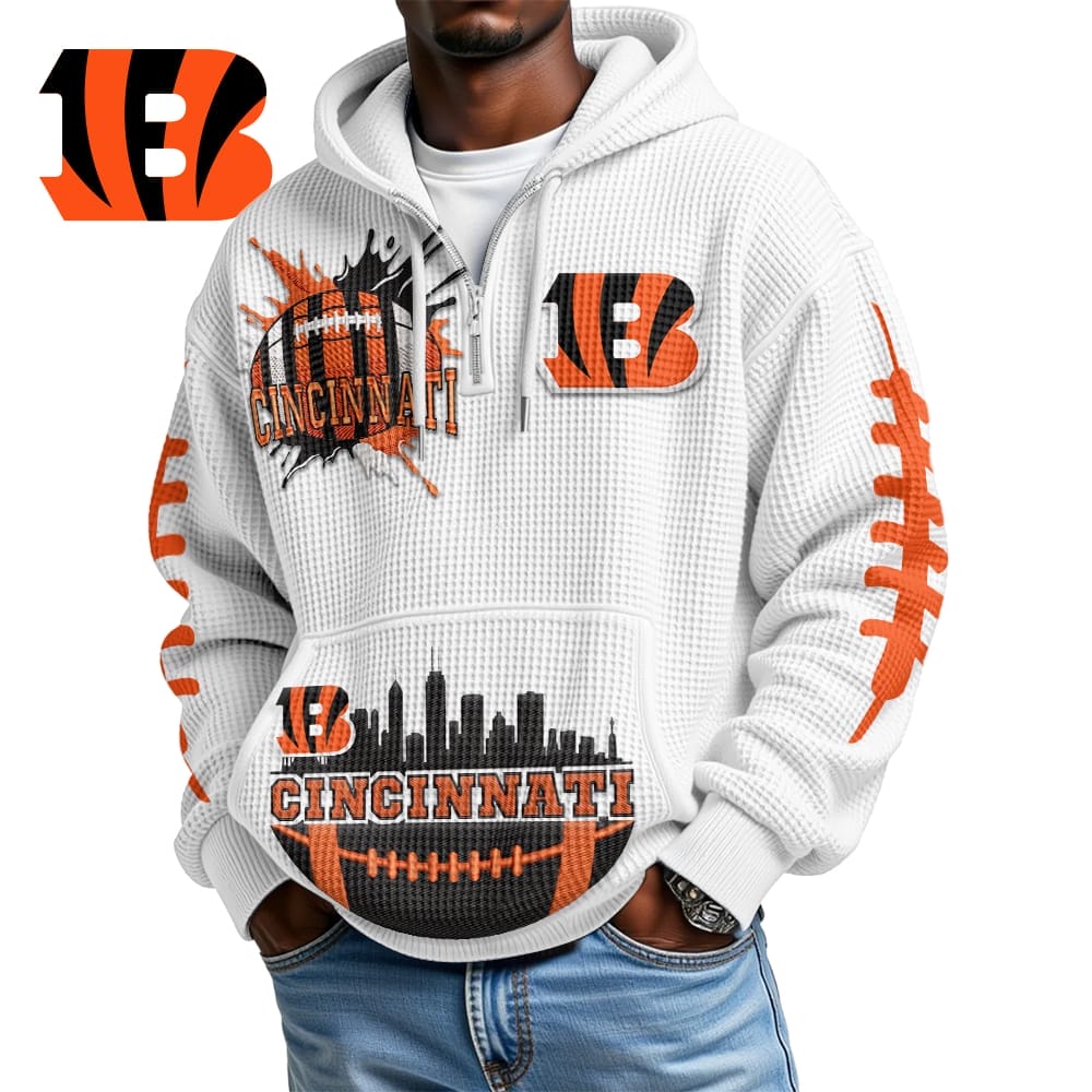 Cincinnati Bengals | Premium NFL Waffle Zipper Long Sleeve Hooded Sweatshirt AMCCLG001629