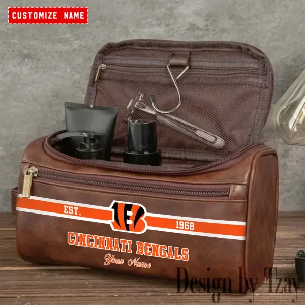 Cincinnati Bengals Walsh Travel Leather Toiletry Bag AMCTLB007
