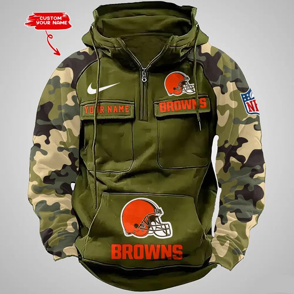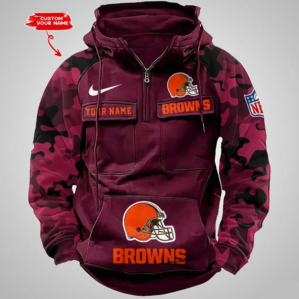 Cleveland Browns Hot Camouflage Multi Pockets Zip Hoodie AMCCLG001185
