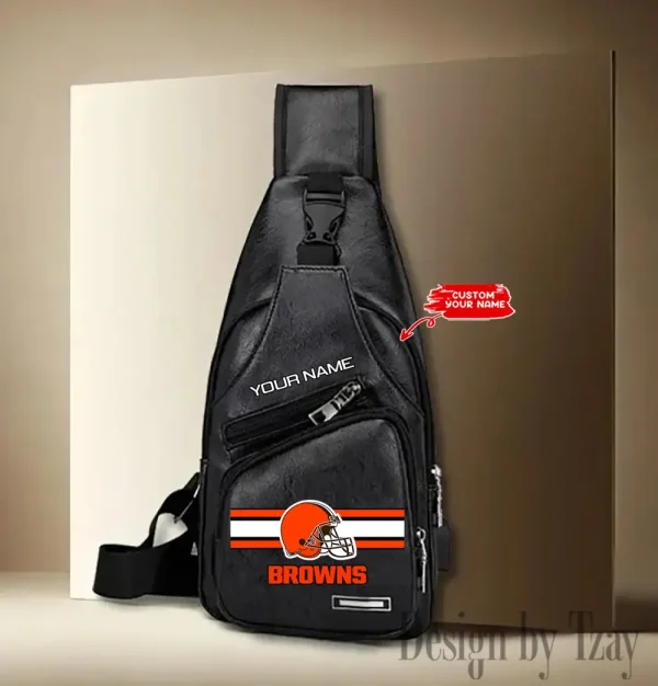 Cleveland Browns Personalized Men Leather Sling Bag Custom Gift For Dad AMCACS000114