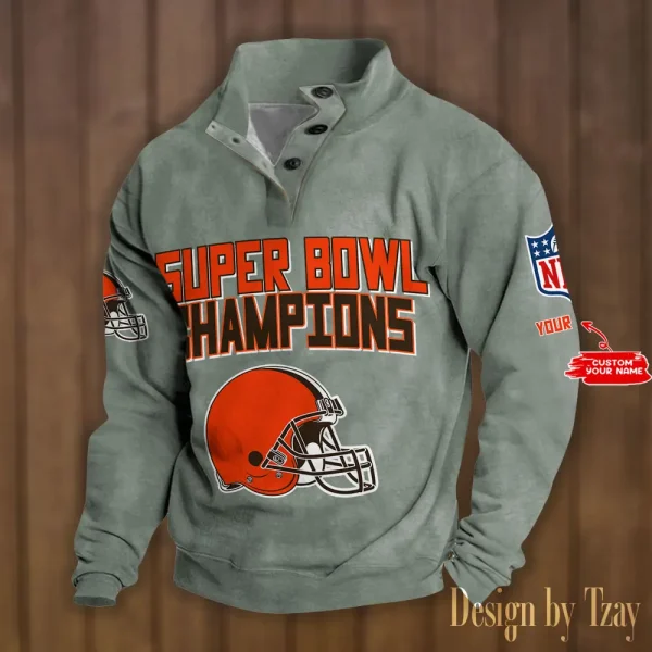 Cleveland Browns Personalized Stand Collar Double Breasted Hoodie Super Bowl AMCDBH00161
