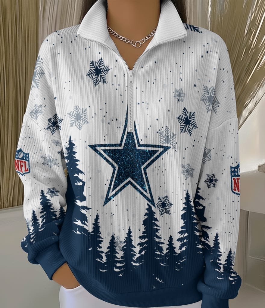Dallas Cowboys 2025 Edition Quarter Zip Corduroy Sweatshirt for Christmas AMCCLG001497
