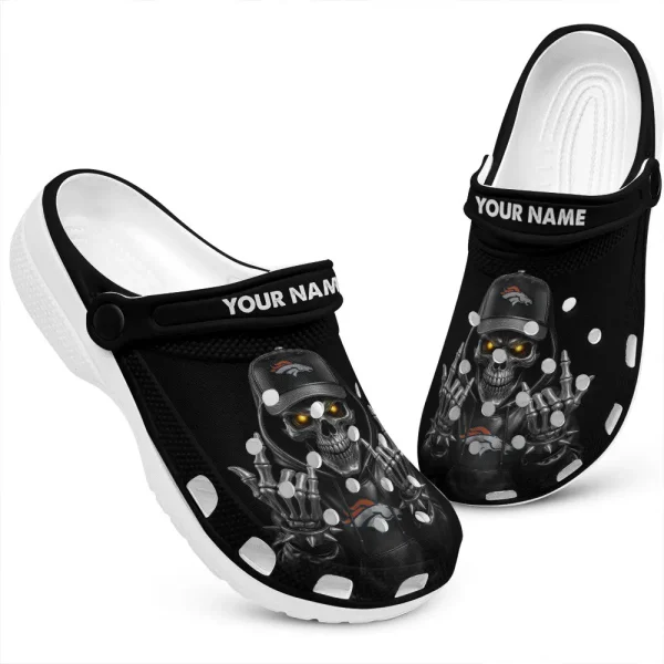 Denver Broncos Football Team US Skull Art Clogs Shoes Custom Name Gift For Fan AMCACS000090