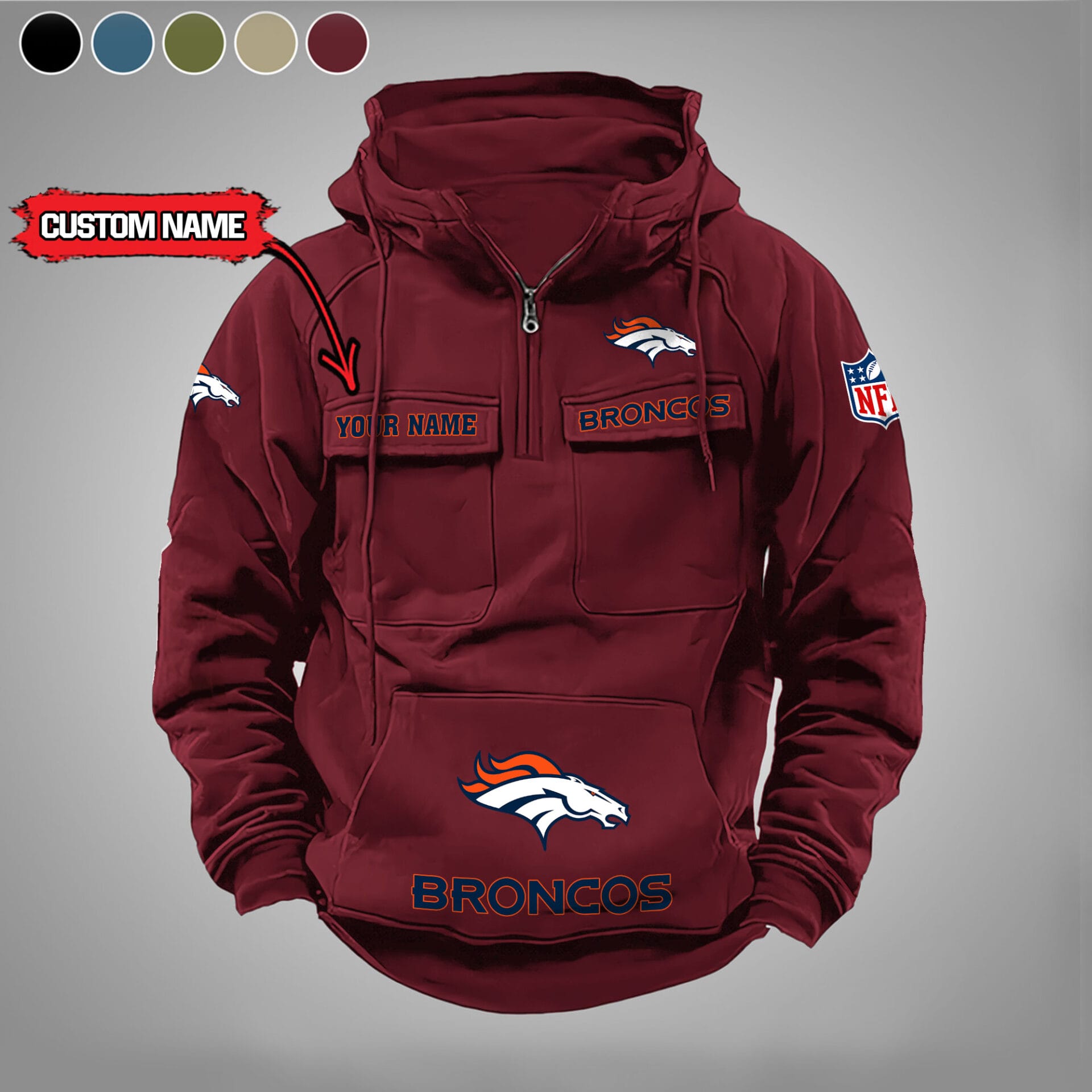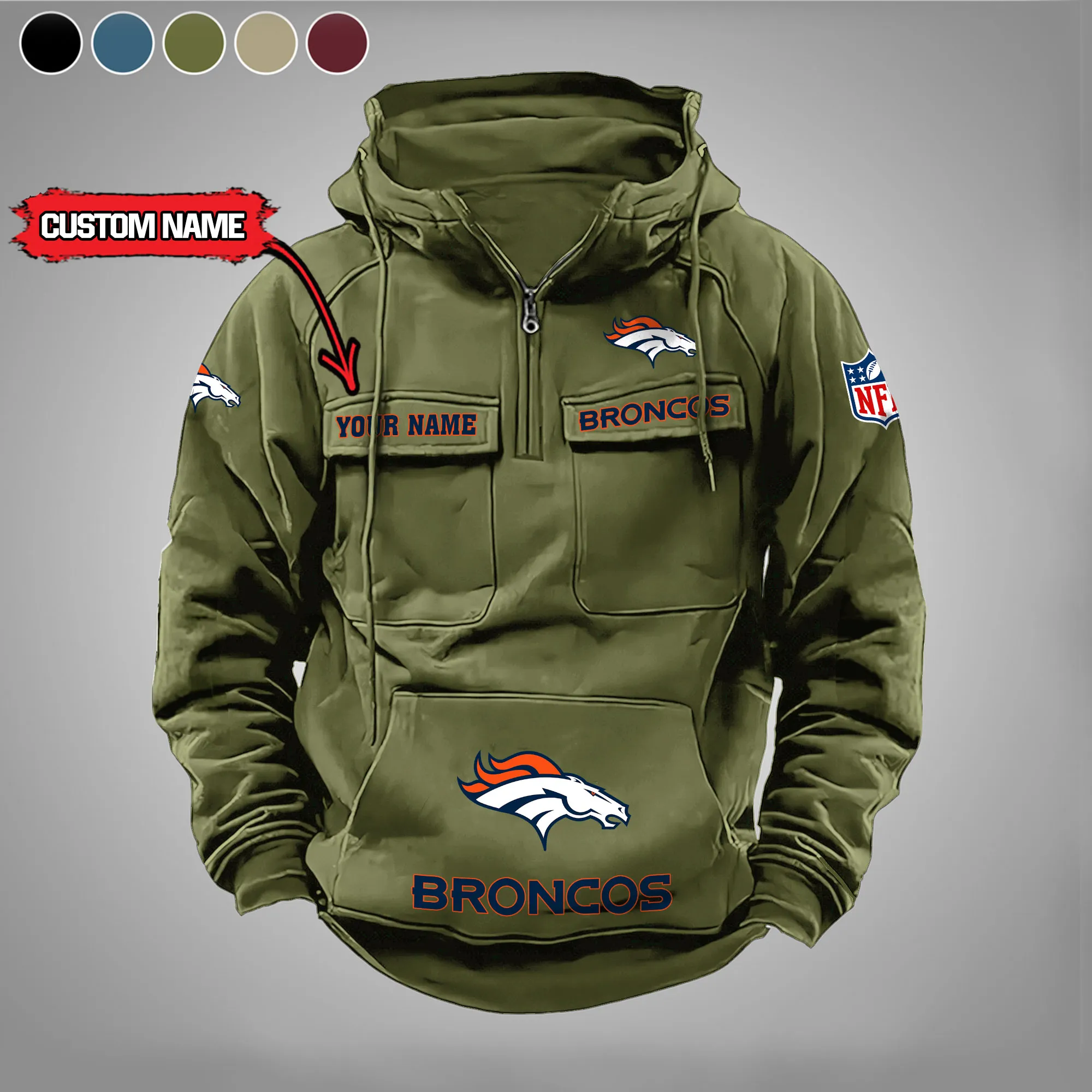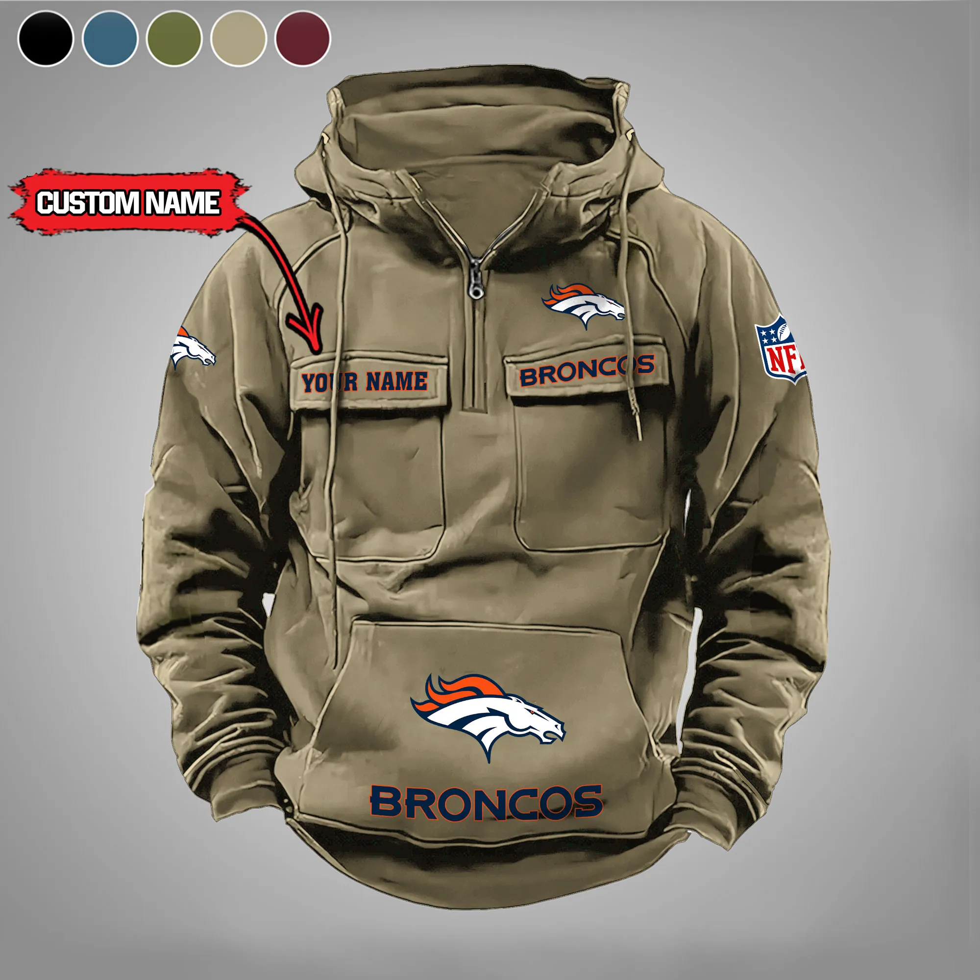 Denver Broncos New Personalized Multi Pockets Zip Hoodie AMCMZHD000019