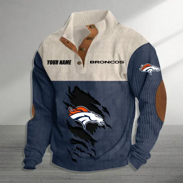 Denver Broncos Personalized Stand Collar Double Breasted Hoodie AMCDBH00014