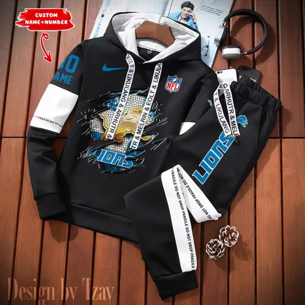 Detroit Lions New Fashion Casual Sportswear: Stylish Hooded Sweatshirt and Jogger Pants Set for Men AMCCSSW011
