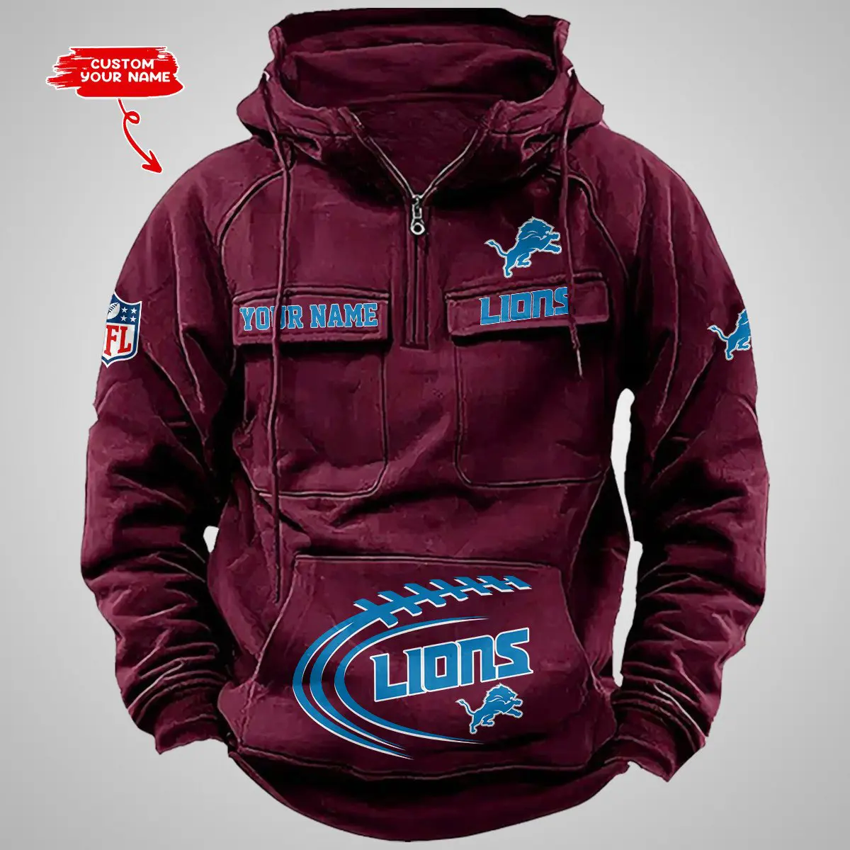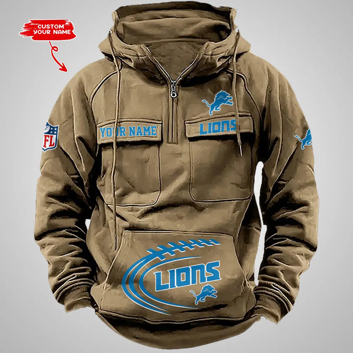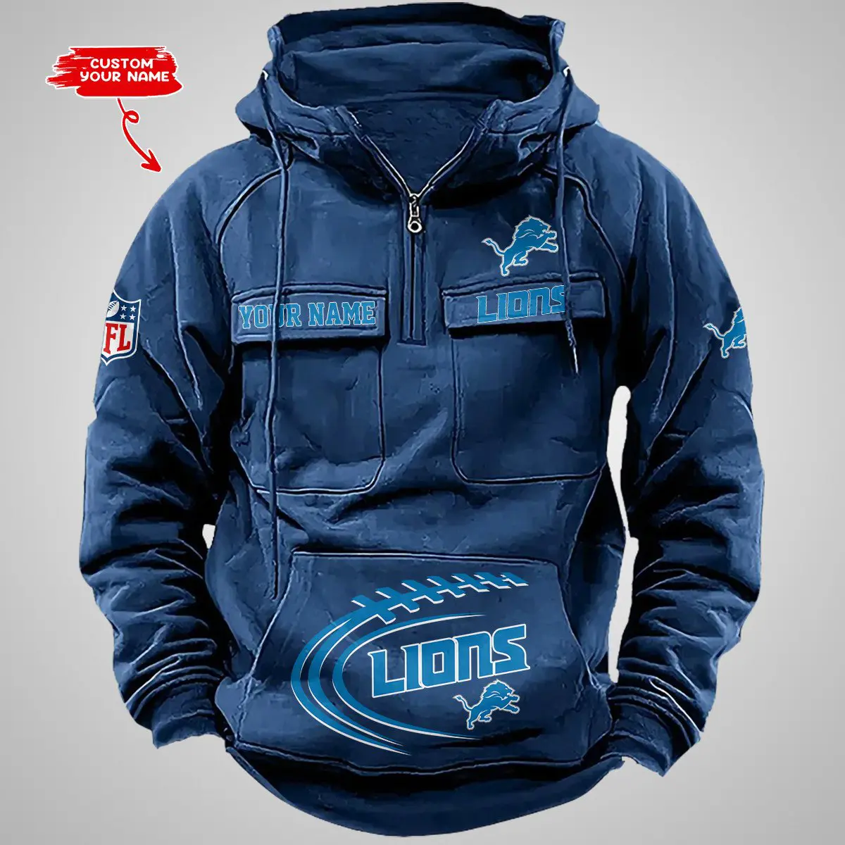 Detroit Lions New Personalized Multi Pockets Zip Hoodie AMCMZHD000084