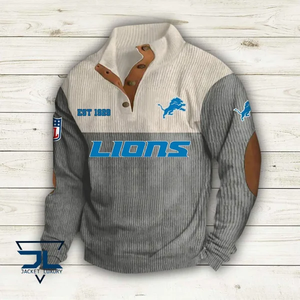Detroit Lions Personalized Stand Collar Double Breasted Hoodie AMCDBH00003