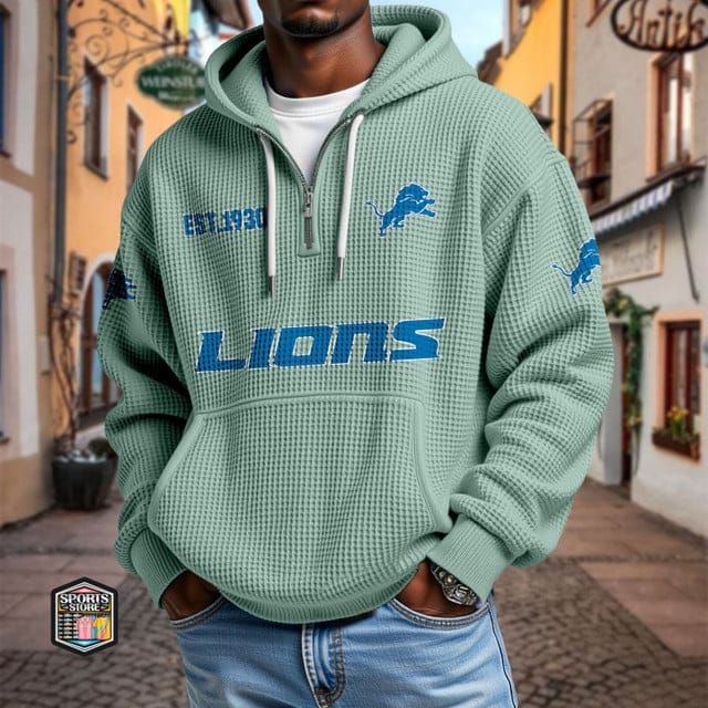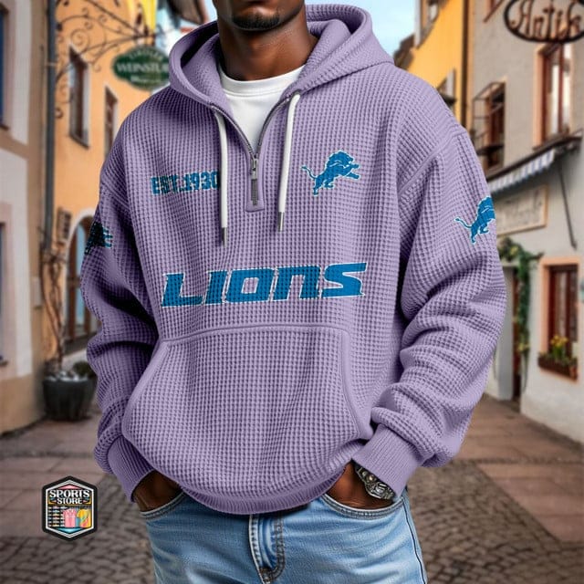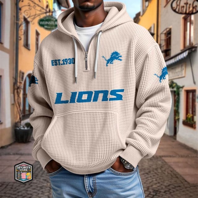 Detroit Lions | Premium NFL Waffle Zipper Long Sleeve Hooded Sweatshirt AMCCLG002315
