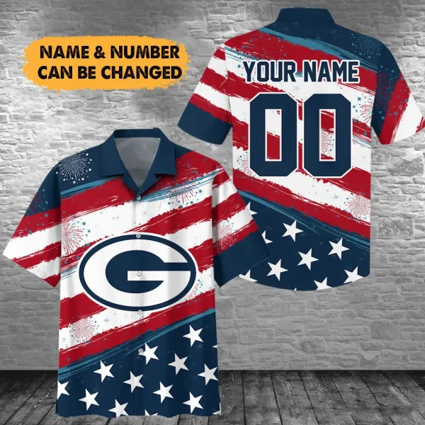 Green Bay Packers Custom Name and Number For Independence Day Summer Hawaiian Shirt AMCHWS00057