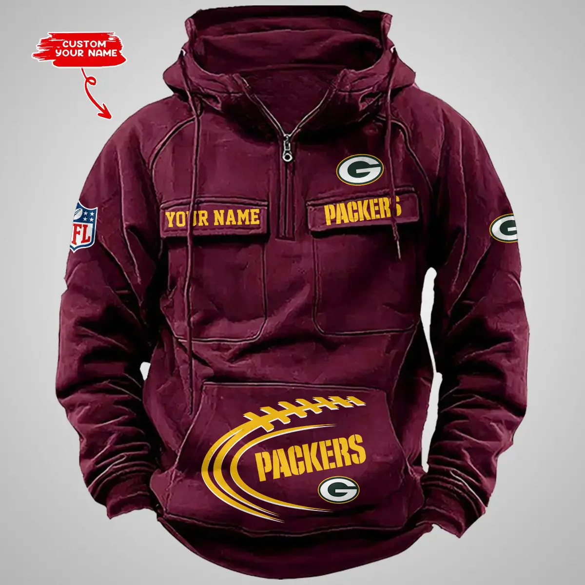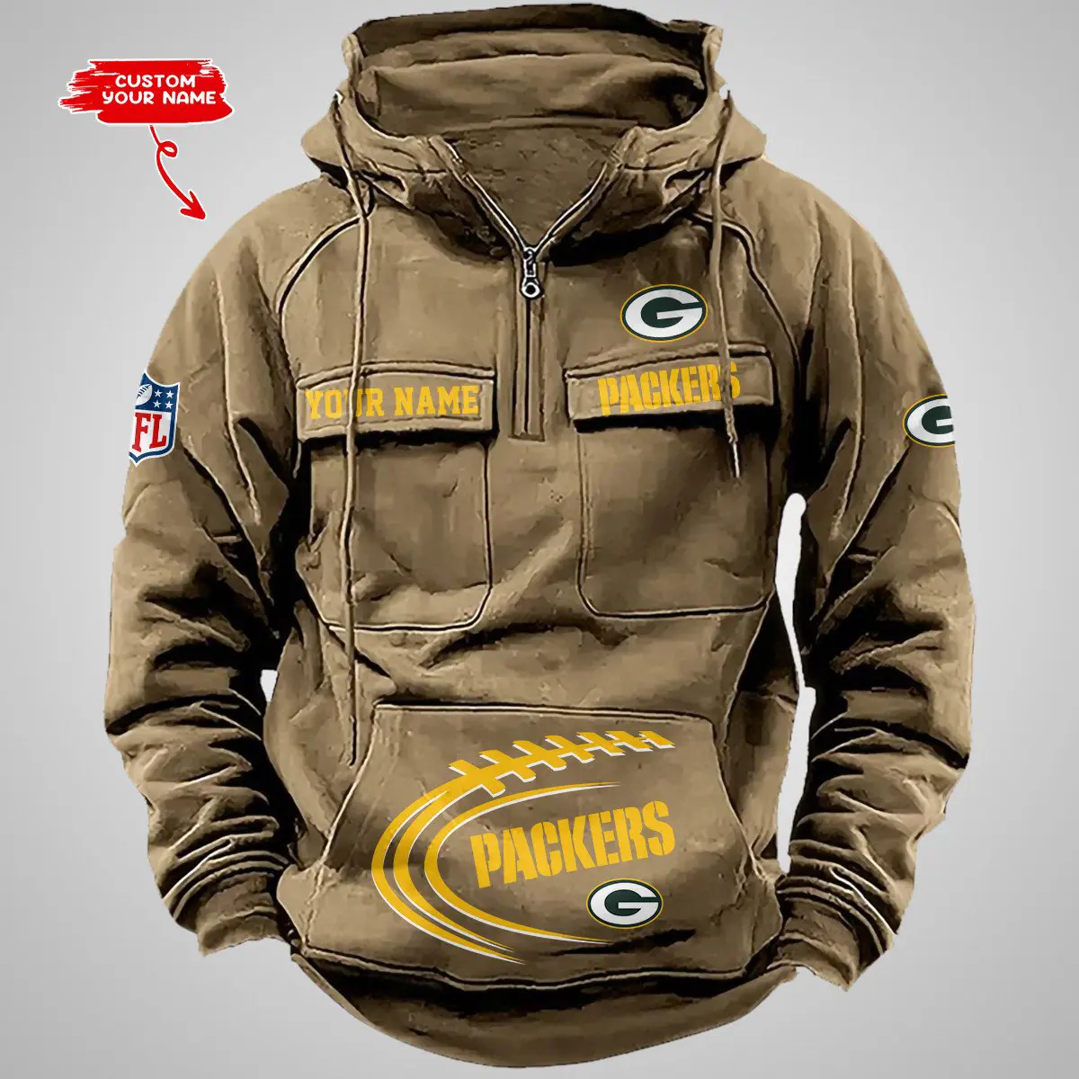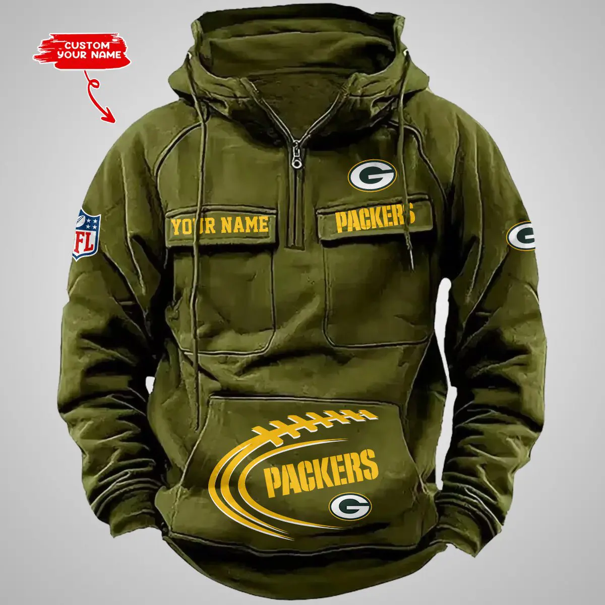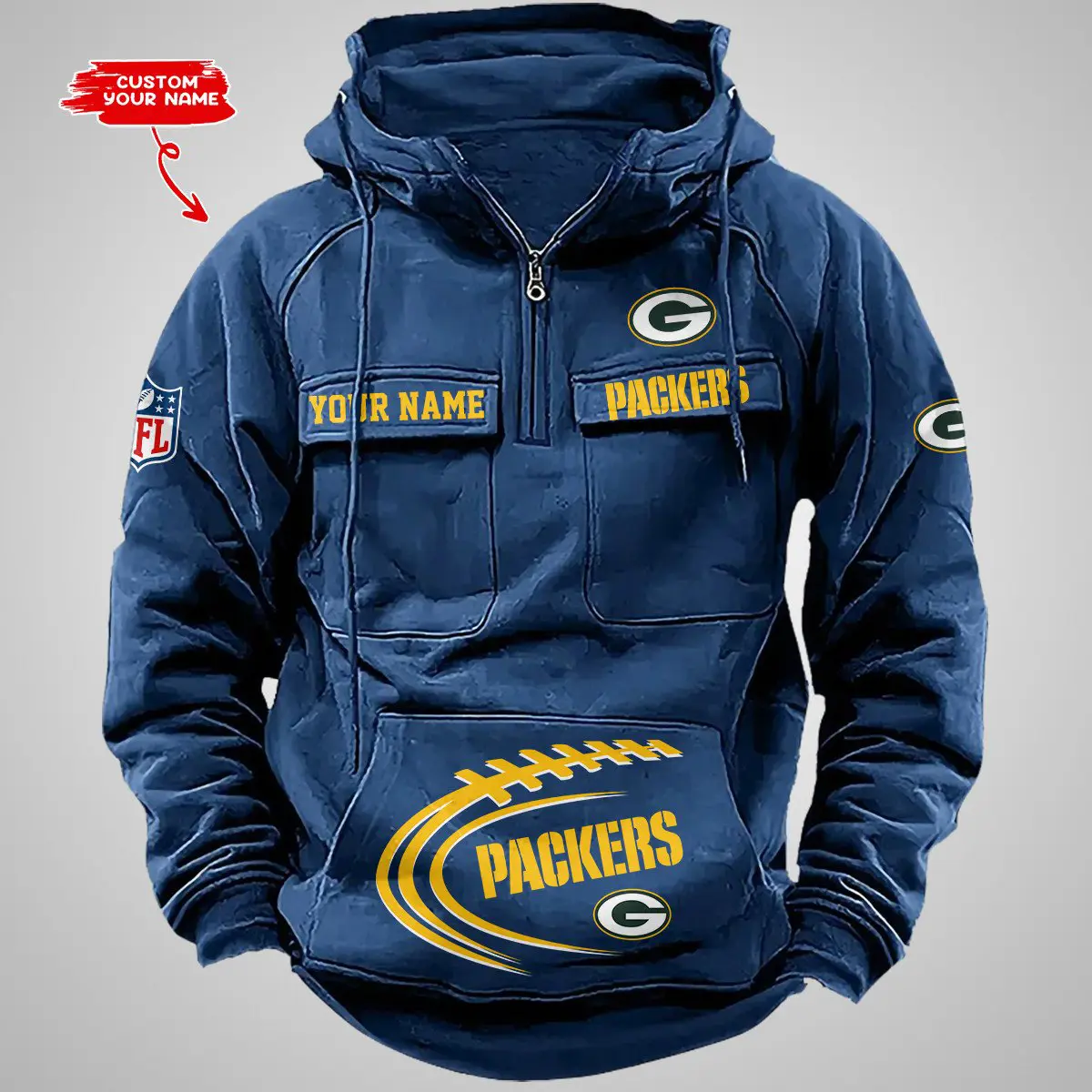 Green Bay Packers New Personalized Multi Pockets Zip Hoodie AMCMZHD000103