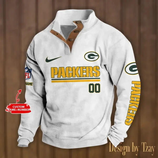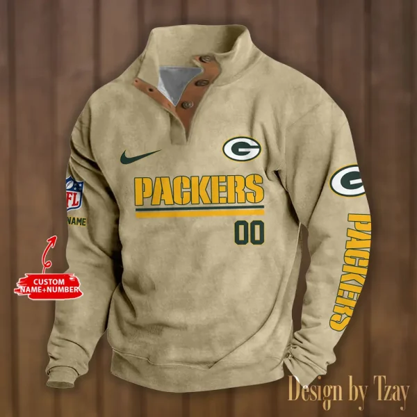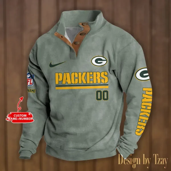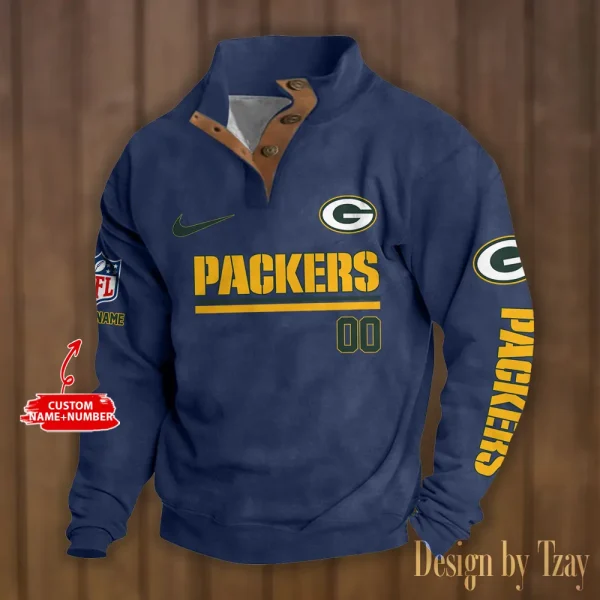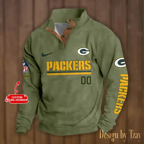 Green Bay Packers Personalized Stand Collar Double Breasted Hoodie AMCDBH00120