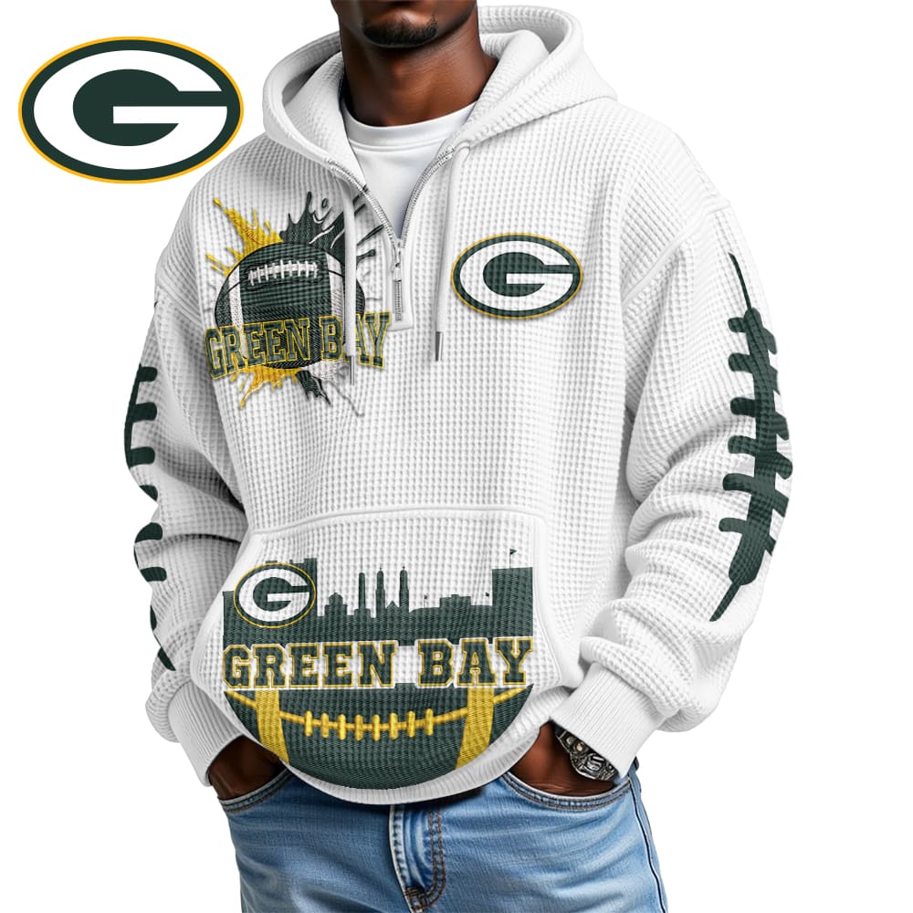 Green Bay Packers | Premium NFL Waffle Zipper Long Sleeve Hooded Sweatshirt AMCCLG001636