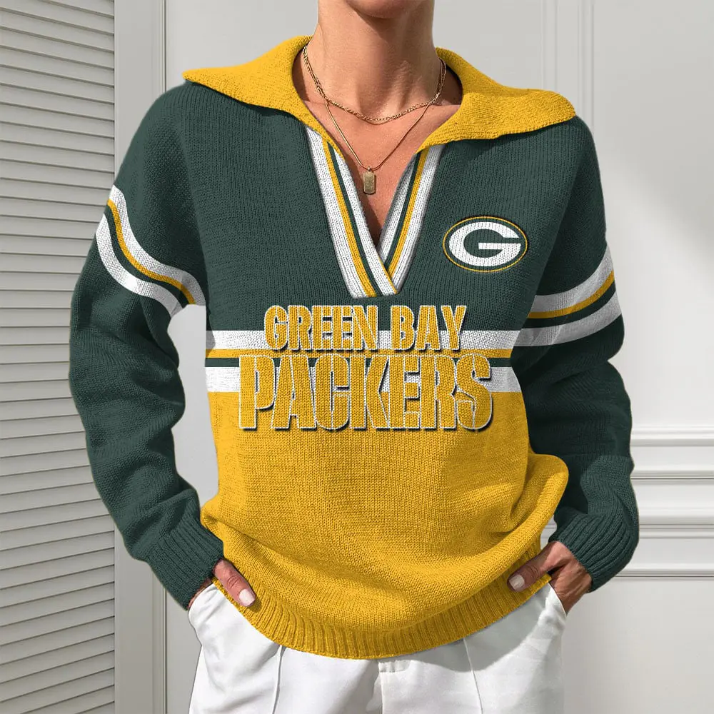 Green Bay Packers Women Customized Name V-Neck Hooded Knit Sweater AMCCLG002382