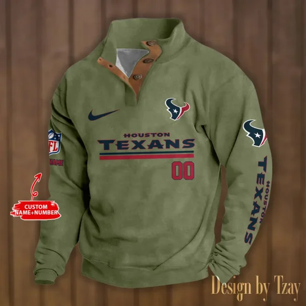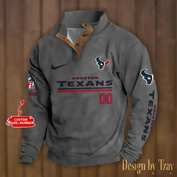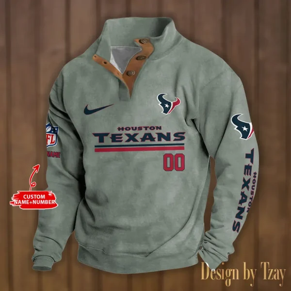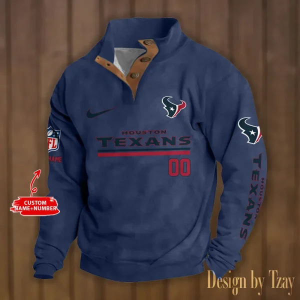 Houston Texans Personalized Stand Collar Double Breasted Hoodie AMCDBH00098