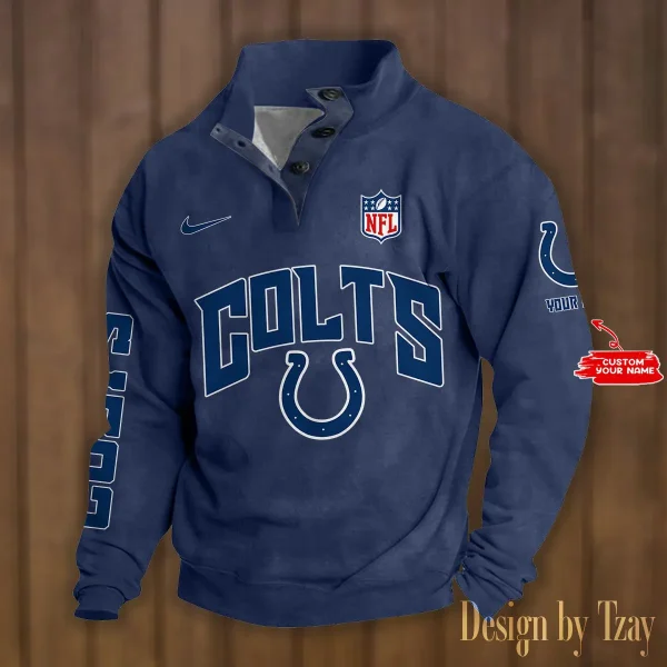 Indianapolis Colts Personalized Stand Collar Double Breasted Hoodie AMCDBH00124