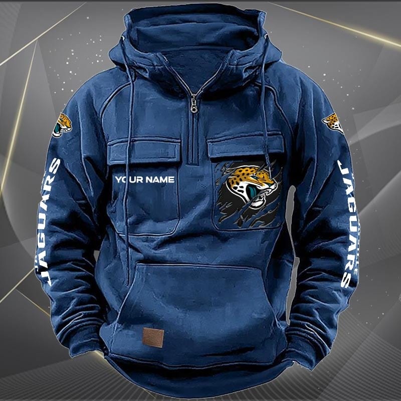 Jacksonville Jaguars New Personalized Multi Pockets Zip Hoodie AMCMZHD000046