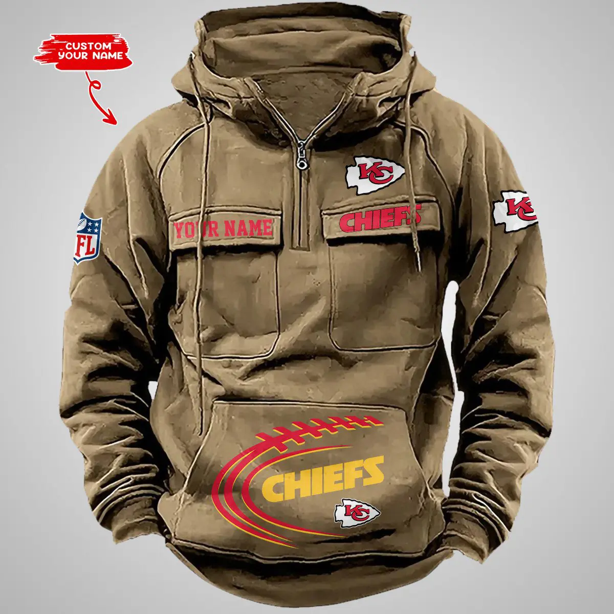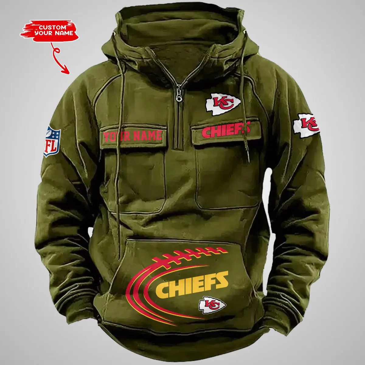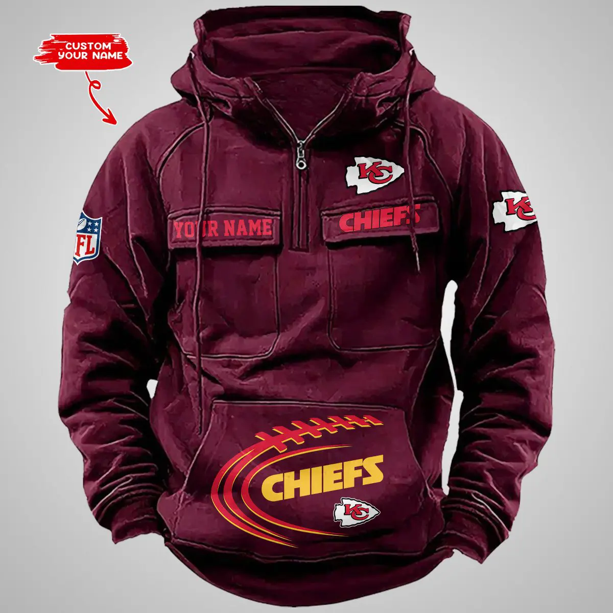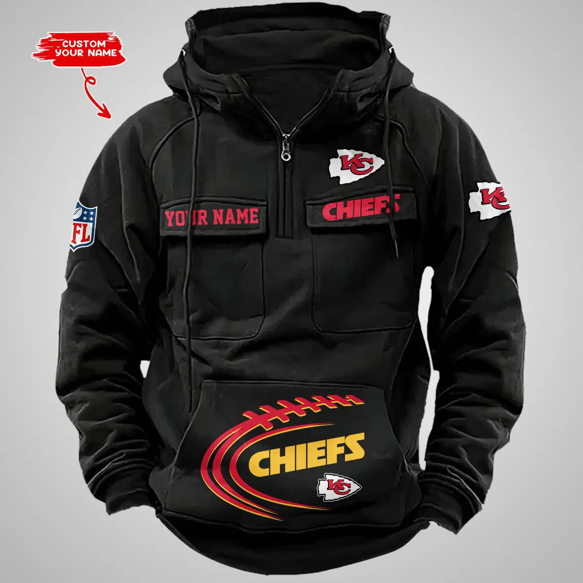 Kansas City Chiefs New Personalized Multi Pockets Zip Hoodie AMCMZHD000066