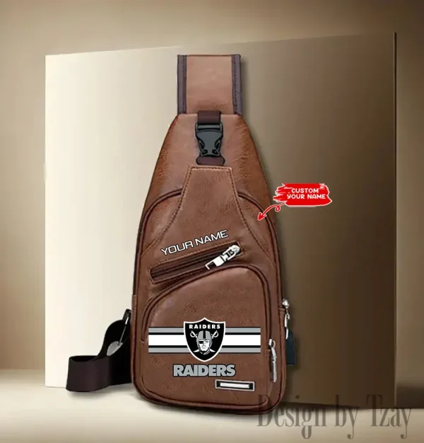 Las Vegas Raiders Personalized Men Leather Sling Bag Custom Gift For Dad AMCACS000148