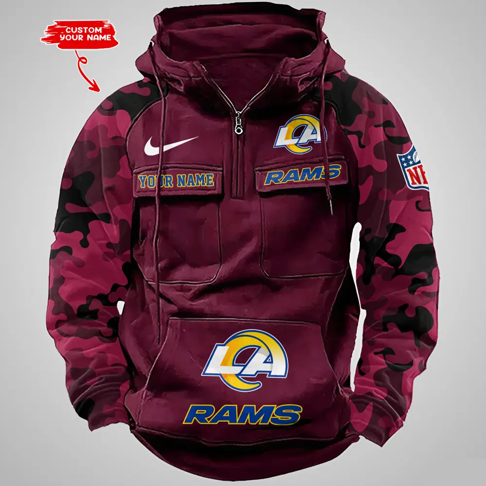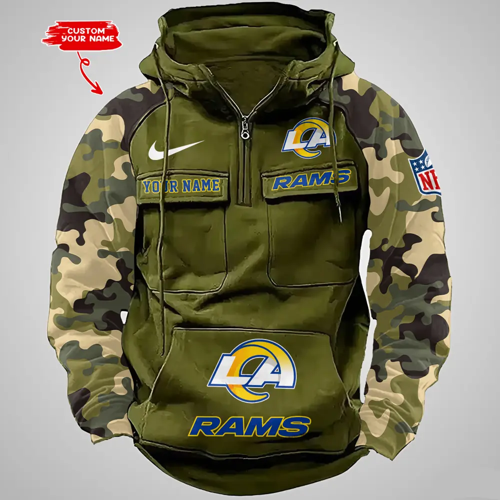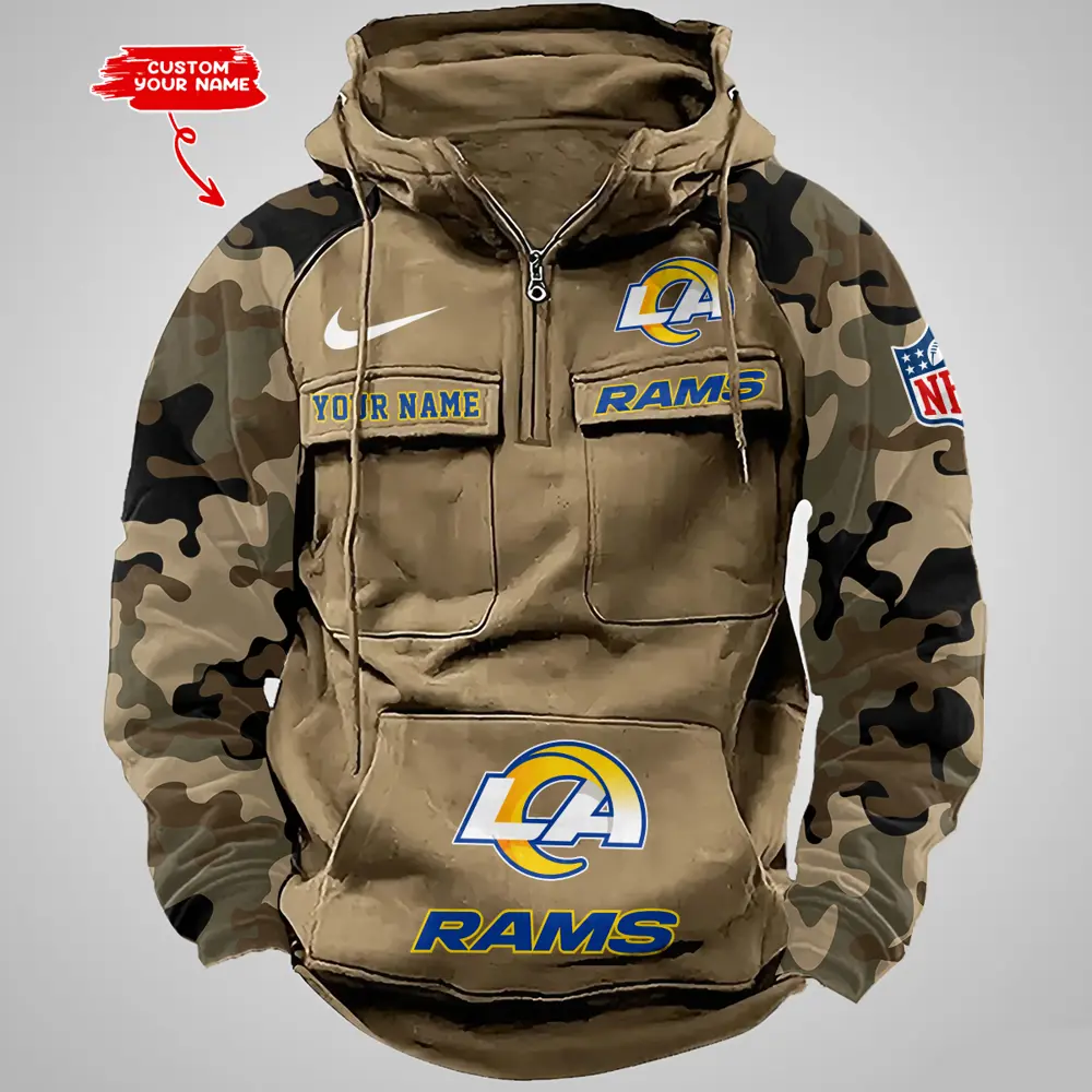 Los Angeles Rams Hot Camouflage Multi Pockets Zip Hoodie AMCCLG001196
