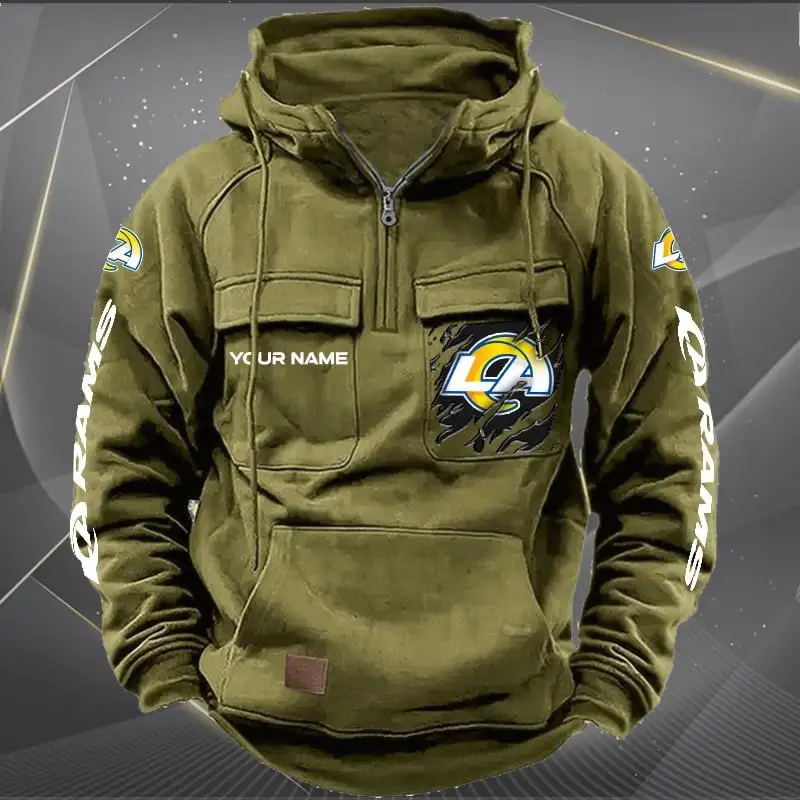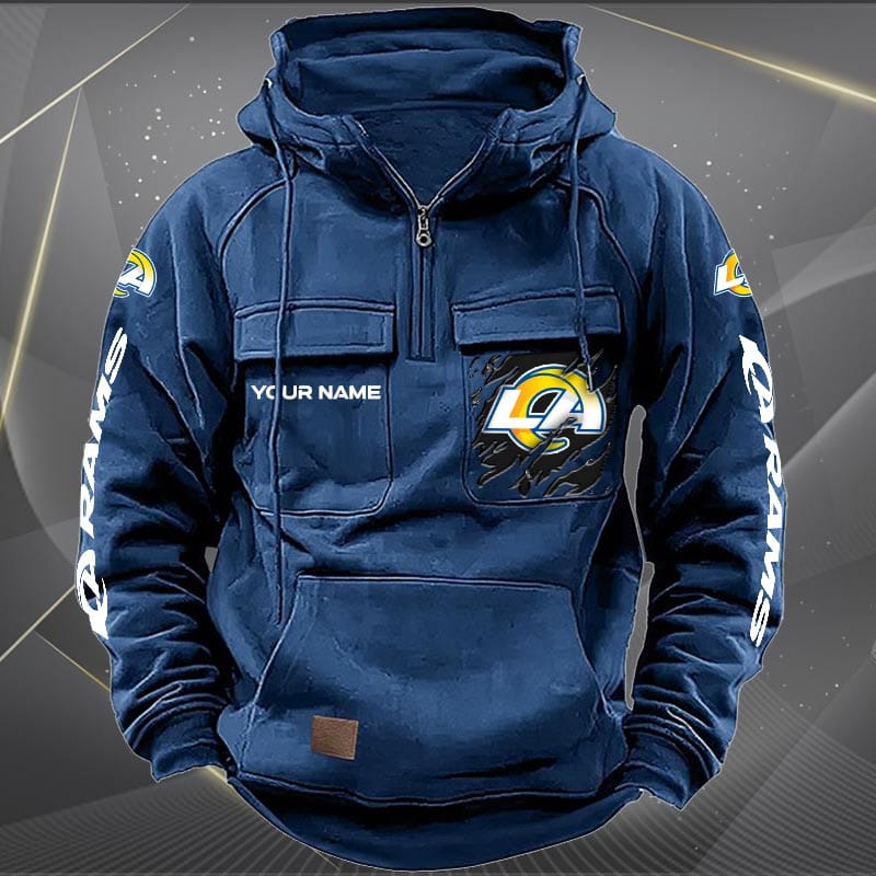 Los Angeles Rams New Personalized Multi Pockets Zip Hoodie AMCMZHD000050