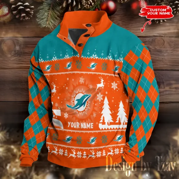 Miami Dolphins Christmas Double Stand Collar Sport Hoodies AMCDBH00315