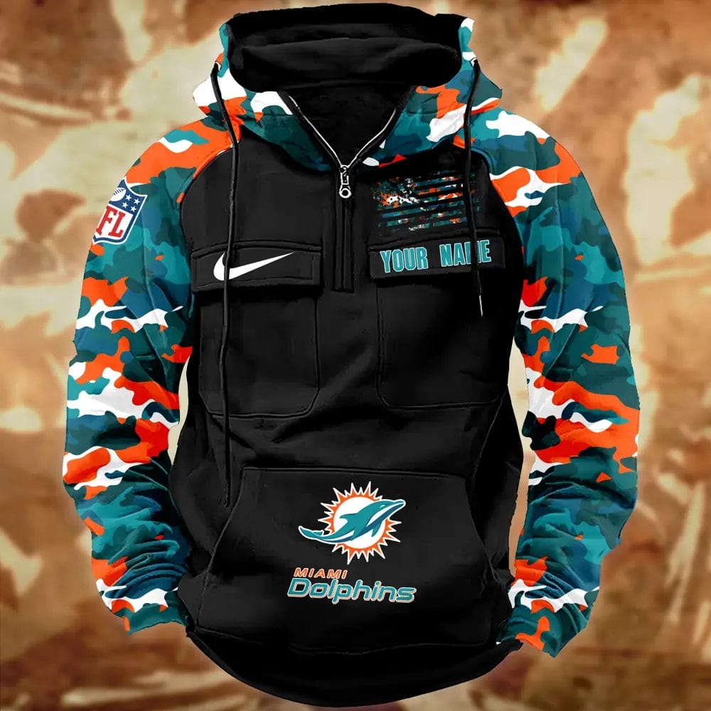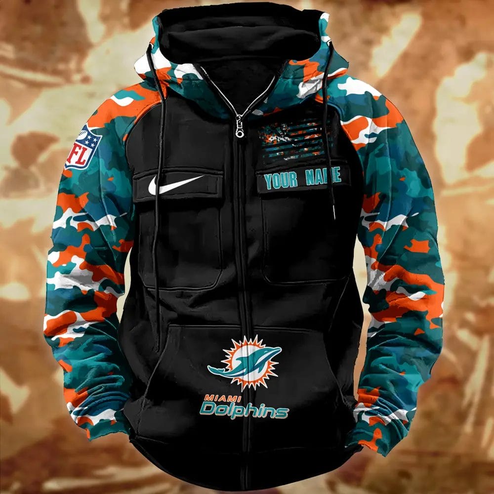 Miami Dolphins Hot Camouflage Multi Pockets Zip Hoodie AMCCLG001133
